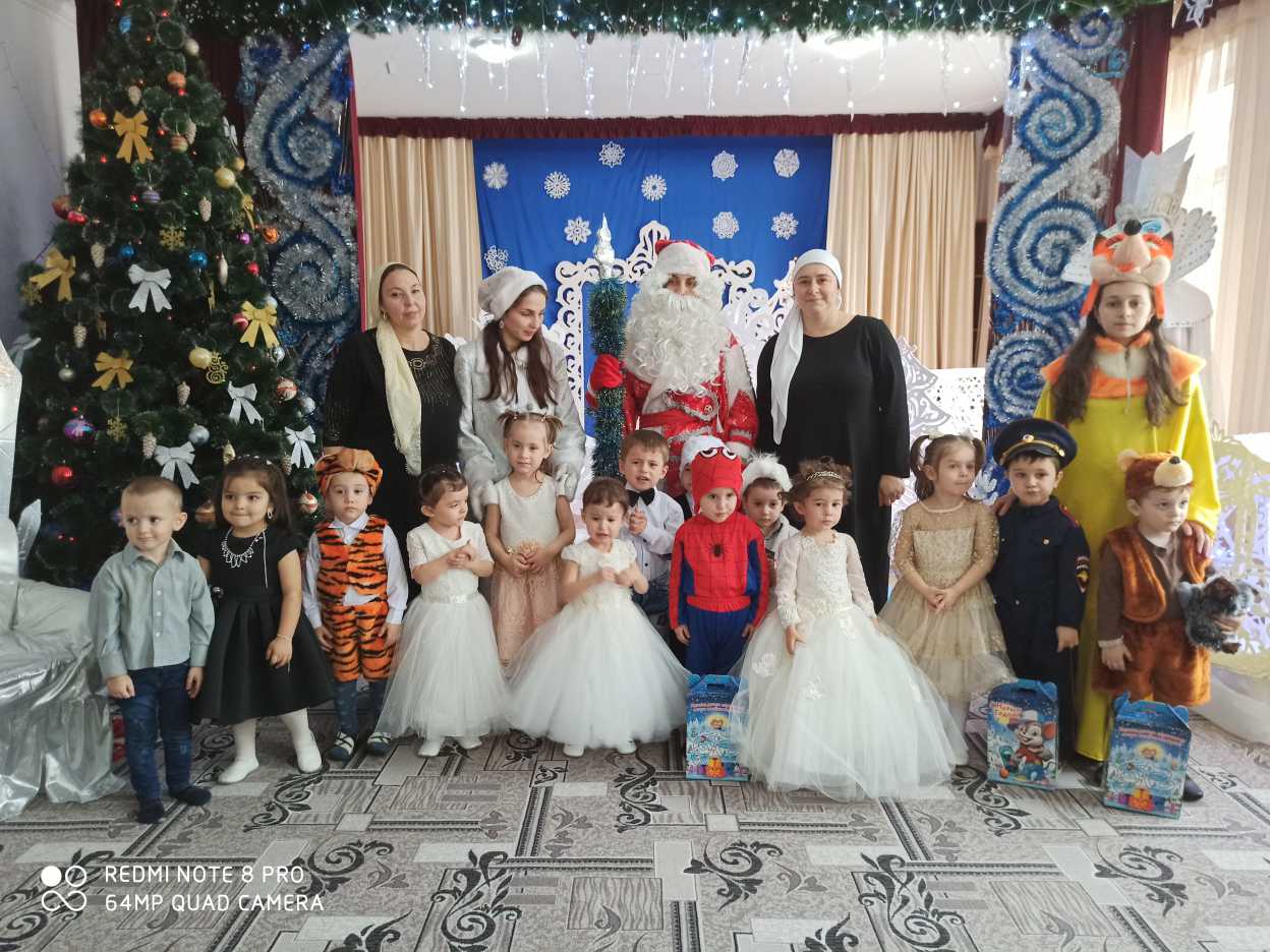 Атмосфера праздника царила в детском саду всю предновогоднюю неделю, и проведённые утренники окунули всех в сказку.К малышам приходили Снеговик, Баба-Яга с Нихочухой и сама Снежная Королева, которые хотели вместе со всеми встречать Новый год и веселили всех гостей играми и забавами.Вот красавица-зима принесла с собой весёлые долгожданные новогодние праздники, одарила всех подарками! А для наших детей и родителей в гостеприимных стенах нашего сада было сказочное представление. Первыми к нарядно украшенной ёлке пришли самые маленькие ребятишки младших групп. И, конечно, кульминацией утренников была встреча с главными героями праздника – Дедом Морозом и Снегурочкой. Для них малыши с особым удовольствием пели, читали стихи и танцевали.Ребята средней группы отправились в новогодний лес вместе с Дедом Морозом и исполняли пожелания. Расколдовали подарки от чар Бабы-Яги своими песнями и танцами. Дети старшей группы встретились со Снежной Королевой, Дедом Морозом. Помогли Деду Морозу вернуть Снегурочку на праздник. Дети приняли участие в настоящем волшебстве, превратив украденный мешок Деда Мороза в новогодние подарки.