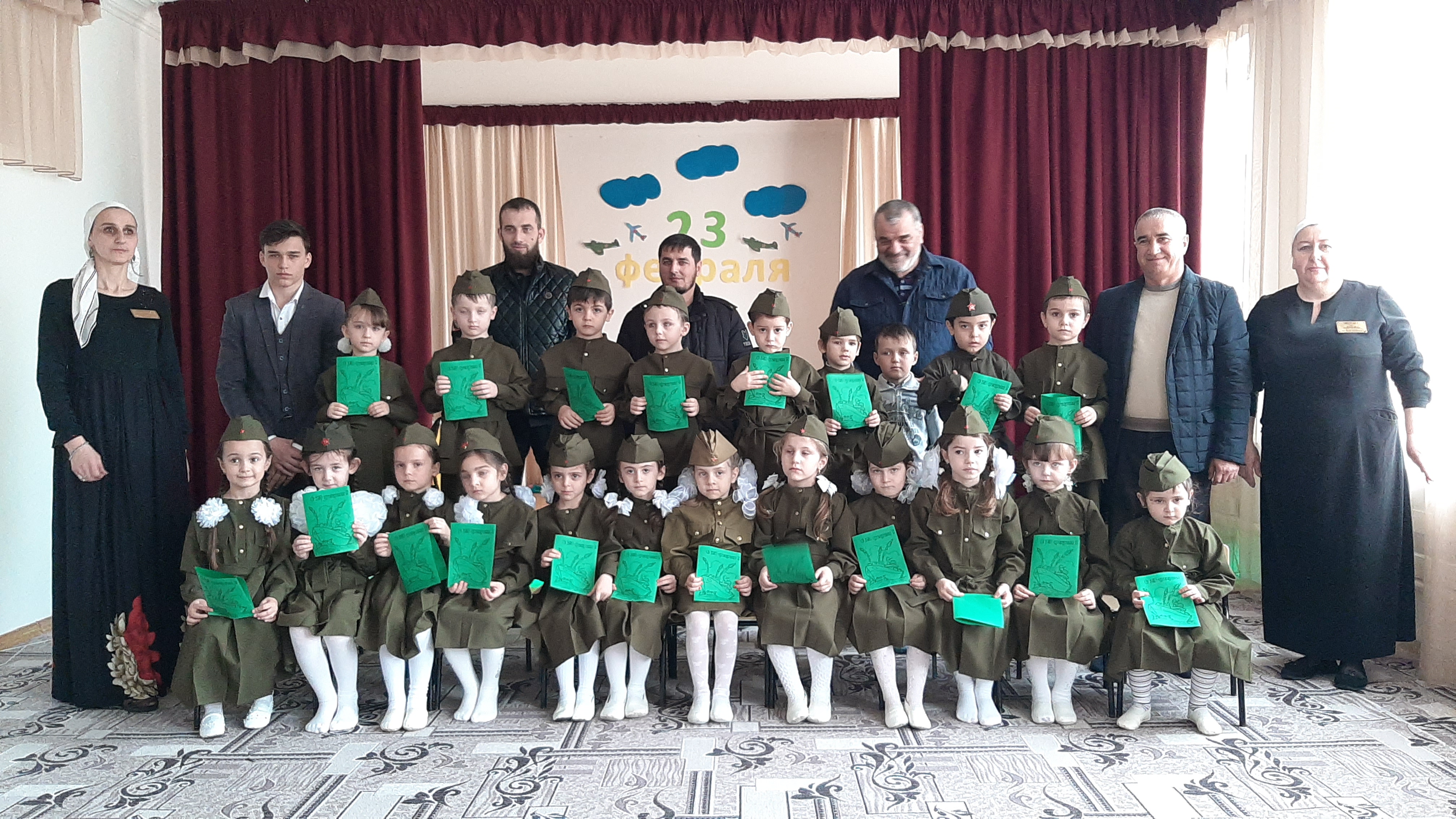 Воспитатели провели тематические беседы «Защитники Отечества», организовали выставку детских работ «Буду в армии служить», изготовили вместе с детьми поздравительные открытки. В приемных групп были размещены папки-передвижки для родителей.21 февраля прошли утренники для воспитанников средней и старшей группы, посвященные празднованию Дня защитника Отечества. Целью мероприятий было воспитание патриотических чувств воспитанников, любви к Родине, развитие артистичности и создание праздничной атмосферы. Дошкольники читали стихи о Родине, для пап пели песни, танцевали. Вместе с папами и дедушками участвовали в спортивных эстафетах и конкурсах. Воспитатели подготовили ряд конкурсов и эстафет для мальчиков – будущих защитников Родины. Все дети были нарядно одеты в символические костюмы, а в конце мероприятия своим папам и дедушкам воспитанники вручили поздравительные открытки, изготовленные своими руками.