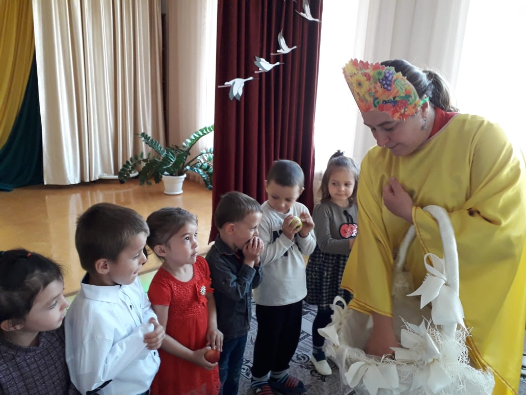 25-26 октября 2020г. в нашем детском саду проходил праздник «Волшебница Осень». Это особое событие, ведь именно к этому празднику родители и дети готовят красочные, яркие костюмы, которые символизируют дары щедрой осени. Во время праздника ребятишки веселились, любовались костюмами. Они пели песни, танцевали, водили хороводы с Осенью, участвовали в сценках, играли в веселые игры, читали стихи про осень, встречали сказочных героев: саму виновницу торжества – Осень, Тучку и др. Все воспитанники получили массу положительных эмоций и угощения от Осени. В связи с ограничительными мерами по коронавирусной инфекции (Covid 19) родители не присутствовали на празднике, но им предоставили видеозарисовки, которые разместили на страничках социальных групп родителей.