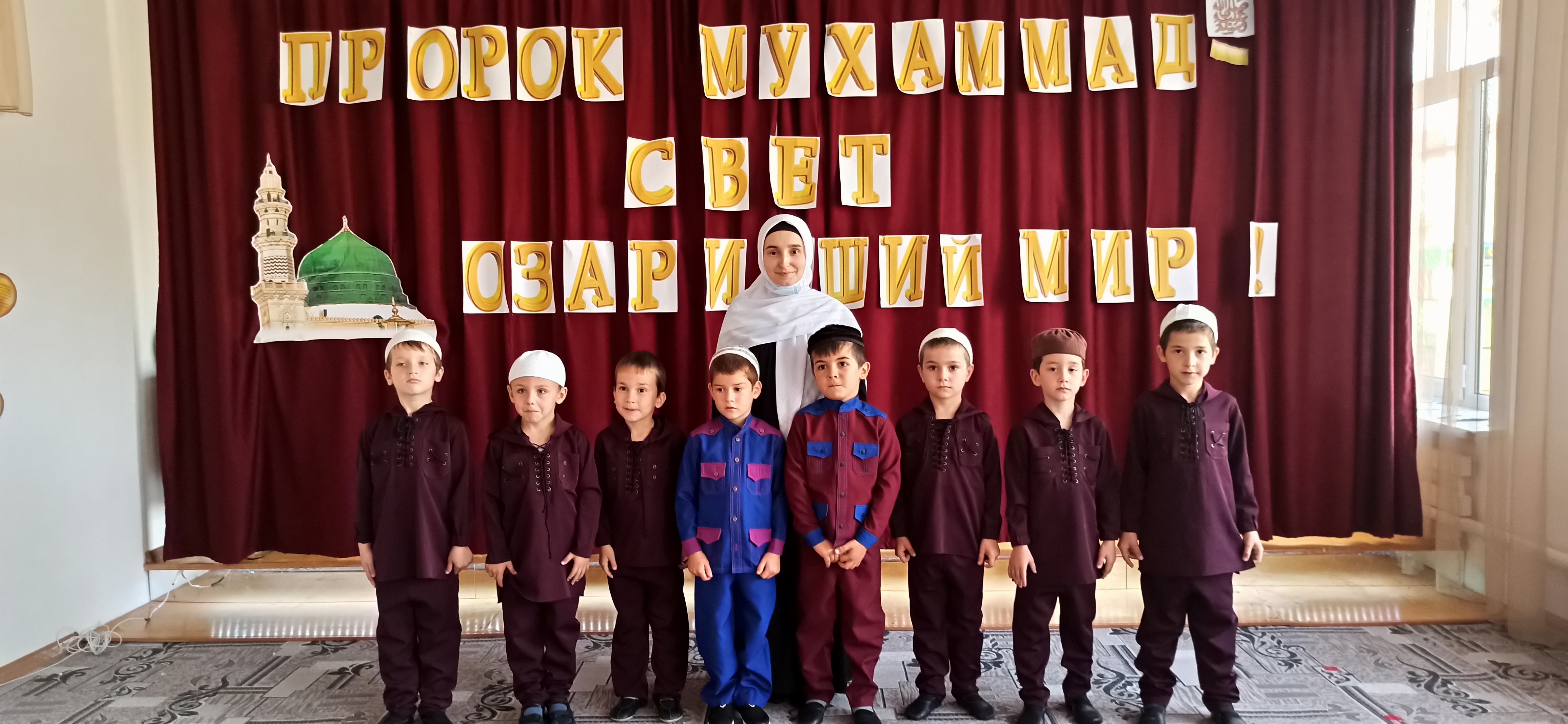 29.10.202029 октября в нашем саду прошло мероприятие приуроченное ко дню рождению Пророка Мухаммада (Да благословит Его Аллах и приветствует), с участием детей старшей группы.