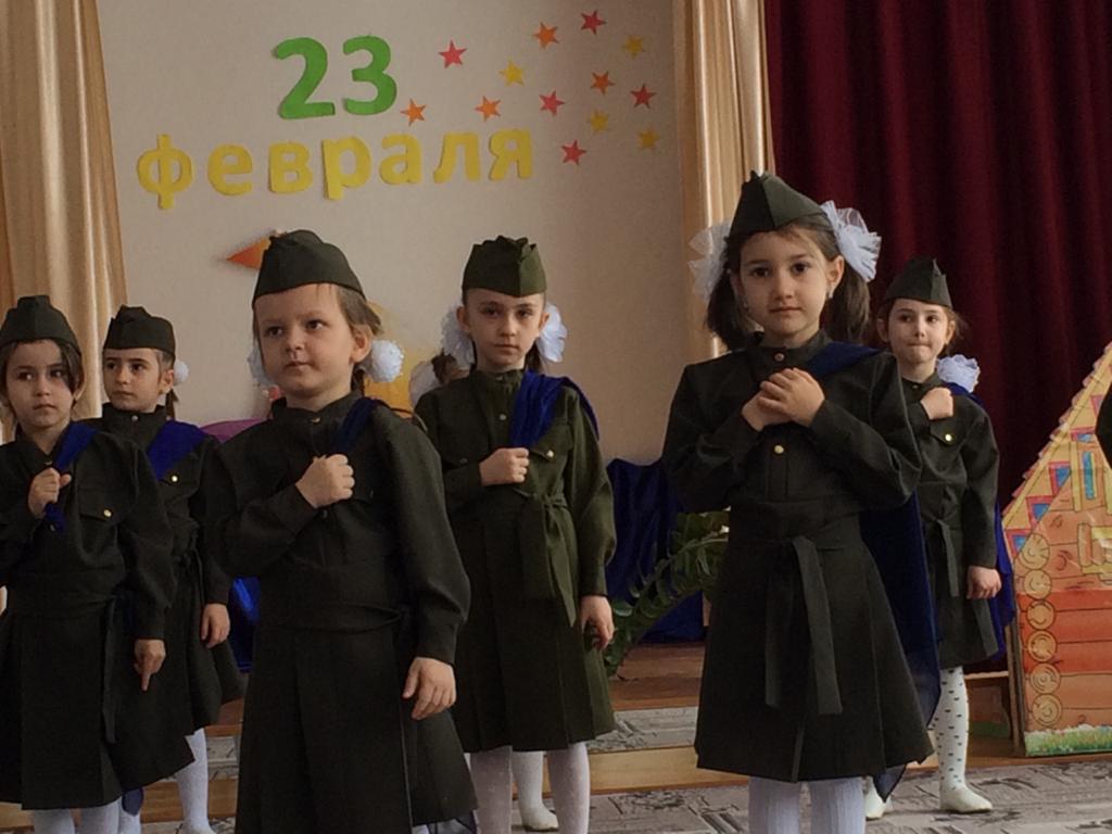 Воспитатели провели тематические беседы «Защитники Отечества», организовали выставку детских работ «Буду в армии служить», изготовили вместе с детьми поздравительные открытки. В приемных группы были размещены папки-передвижки для родителей.19 февраля прошли праздники для воспитанников средней и старшей группы, посвященные празднованию Дня защитника Отечества. Целью мероприятий было воспитание патриотических чувств воспитанников, любви к Родине, развитие артистичности и создание праздничной атмосферы. Дошкольники читали стихи о Родине, для пап пели песни, танцевали. Участвовали в спортивных эстафетах и конкурсах. Воспитатели подготовили ряд конкурсов и эстафет для мальчиков – будущих защитников Родины. Все дети были нарядно одеты в символические костюмы, а в конце мероприятия воспитанники сфотографировались с поздравительными открытками, изготовленными своими руками, которые вручили дома своим папам и дедушкам