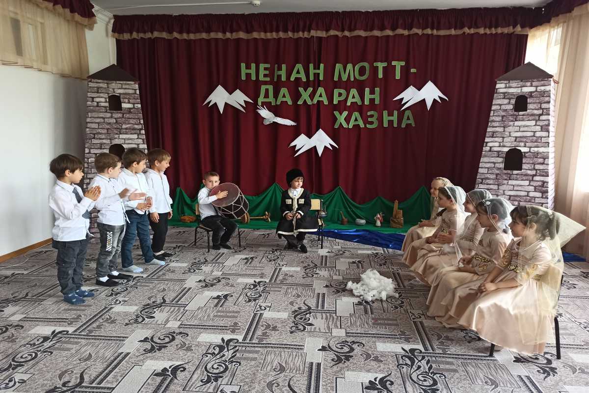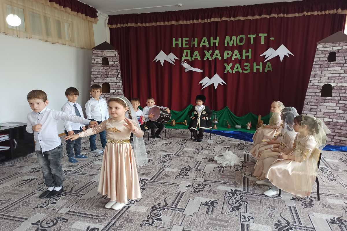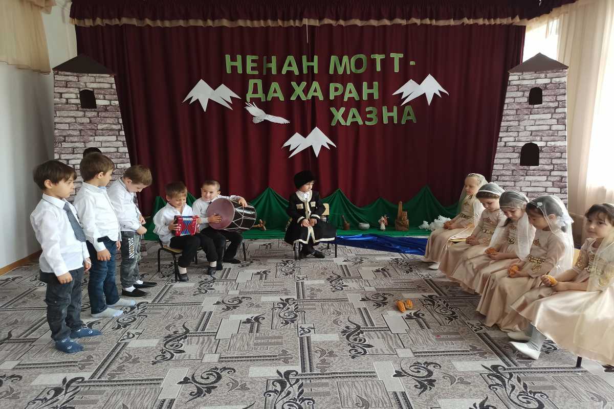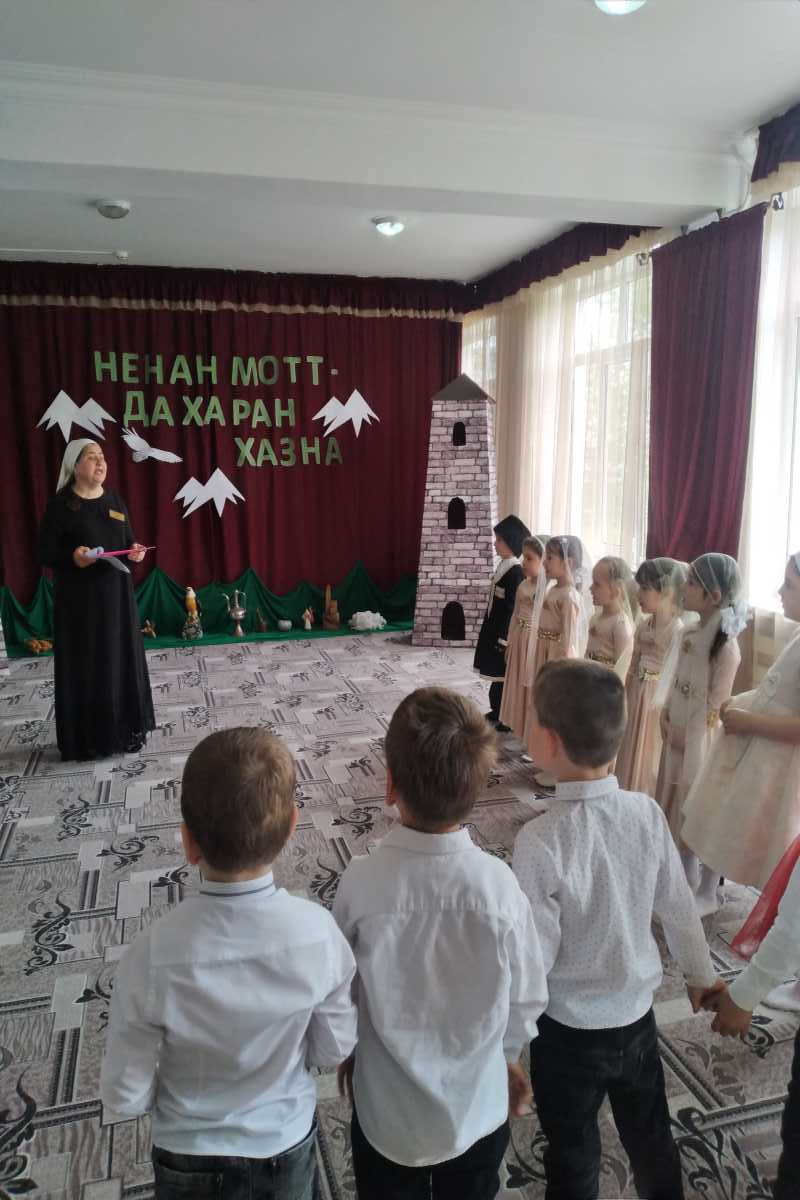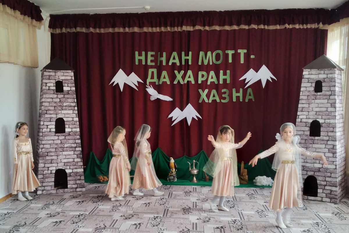 Позже происходит знакомство с классической литературой, с творчеством замечательных мастеров. 25 апреля с воспитанниками средней группы «Фиалка» воспитатели Домбаева Р.Х., Хазуева З.У. провели праздник «Ненан мотт-Дахаран хазна». Целью данного мероприятия стало: вызвать интерес дошкольников к изучению и сохранению родного языка, воспитать уважение к культуре и традициям своего народа, развивать творческие способности.Задачи:Рассказать детям о празднике «День родного языка»;Охарактеризовать многонациональность нашей страны;Показать новые стороны с детства знакомых нам языков;Проанализировать свое отношение к языку.Дети были в национальных костюмах, читали стихи на родном языке, пели национальные песни и танцевали. Дошкольникам рассказали о красоте чеченского языка, о писателях родного края, о культуре и традициях. Воспитанники средних групп показали зрителям сценку о национальных традициях. Все получили положительные эмоции.Также, воспитанница старшей группы «Ромашка» участвовали в районном дистанционном смотре с воспитателями Бекаевой З.Р. Маазовой М.Х. Они представили стихотворение Азы Атагинской «Ненал мерза х1ума дац»