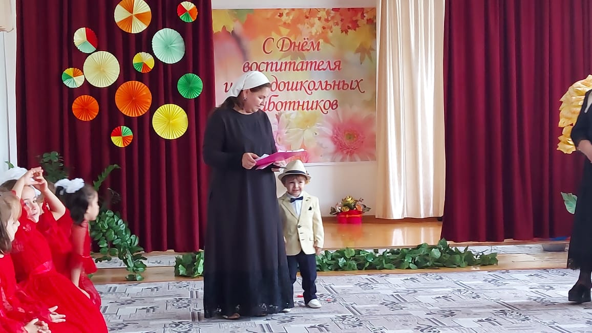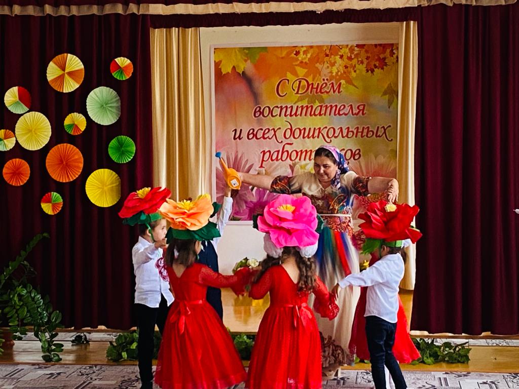 Благодаря этой дате, появилась возможность поблагодарить тех, без кого жизнь детей в дошкольном учреждении не была бы такой увлекательной, безопасной и даже вкусной. В отличие от праздников, во время которых в центре внимания бывают дети, в этот день поздравления принимали сотрудники ДОУ. В нашем детском саду прошёл праздничный концерт для всех сотрудников детского сада, на котором, выступали дети старшей группы совместно с воспитателями Хазуевой З.У. и Домбаевой Р.Х. Они пели песни, читали стихи и танцевали. Малыши 2-ой младшей группы «Рыбки» исполнили танец инсценировку «Веселый огород», которым очень тронули всех присутствующих. Все номера были яркие, интересные, красивые. Также поздравить воспитателей пришли родители, которые прочитали трогательные стихи и спели поздравительную песню.