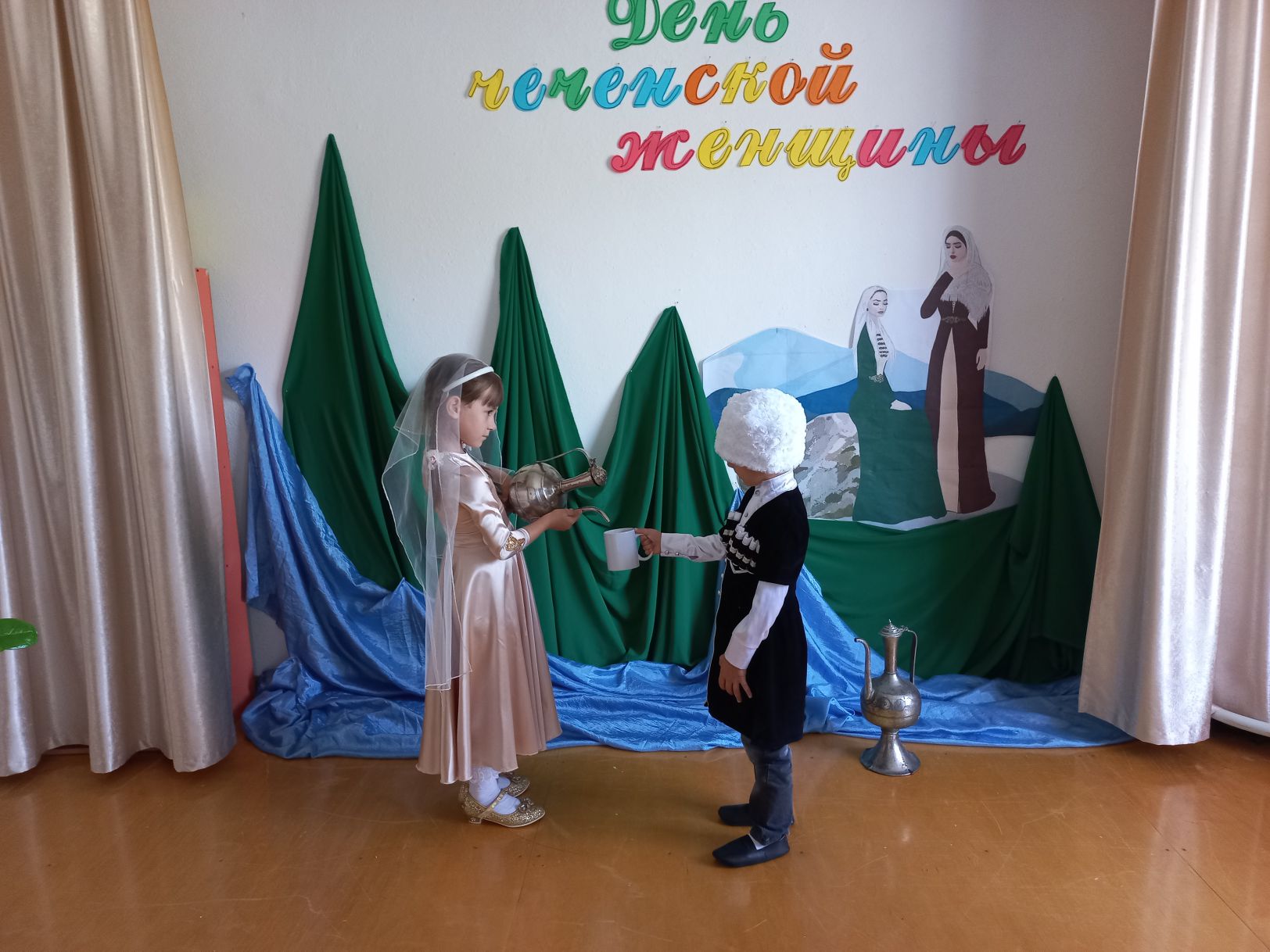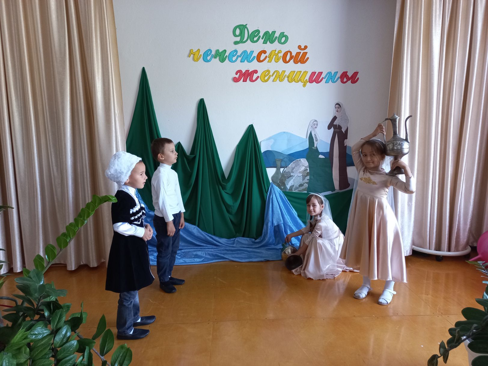 Дети были в национальных костюмах, читали стихи на родном языке, пели национальные песни и танцевали. Дошкольникам рассказали о происхождении этого праздника, что праздник основан в память о 46-ти чеченских девушках, погибших во время Кавказской войны, о культуре и традициях чеченского народа.