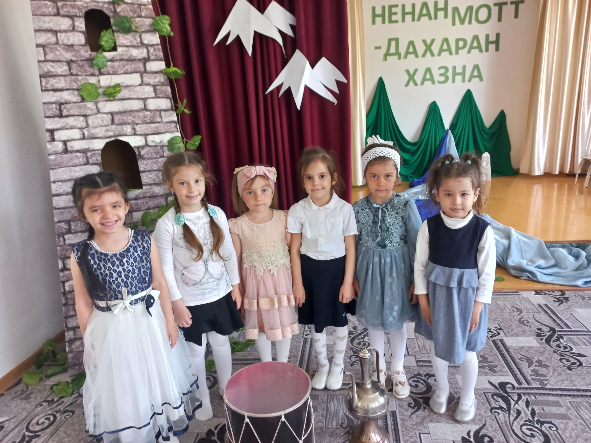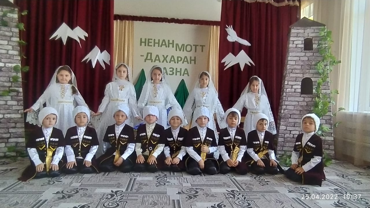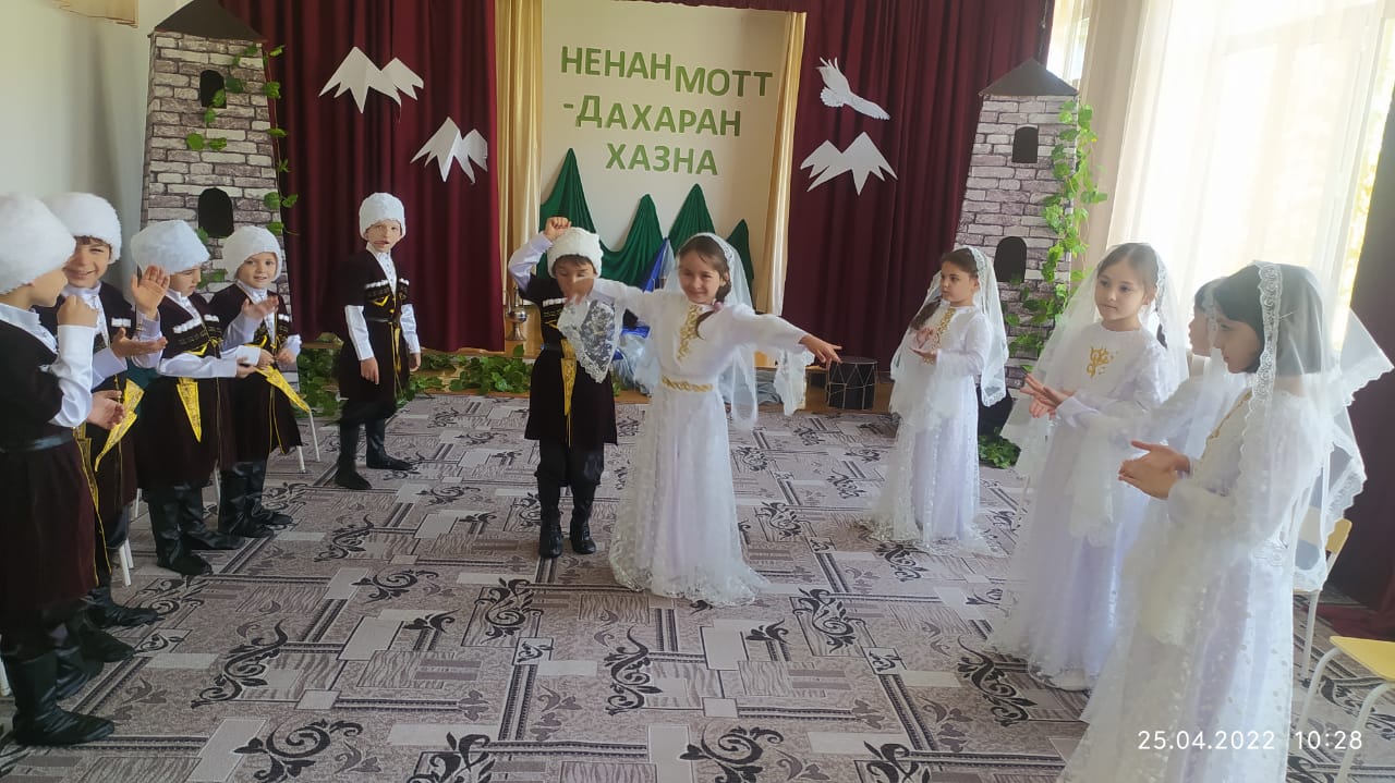 25 апреля с воспитанниками средней группы «Фиалка», воспитатель Абубакарова А.М. провела праздник «Ненан мотт-Дахаран хазна». Целью данного мероприятия стало: вызвать интерес дошкольников к изучению и сохранению родного языка, воспитать уважение к культуре и традициям своего народа, развивать творческие способности.Дети были в национальных костюмах, читали стихи на родном языке, пели национальные песни и танцевали. Дошкольникам рассказали о красоте чеченского языка, о писателях родного края, о культуре и традициях. Воспитанники средних групп показали зрителям сценку о национальных традициях. Все получили положительные эмоции.С детьми нашей группы, воспитатели: Домбаева Р.Х., Хазуева З.У., проведен утренник по сценарию «Ненан-мотт». Мероприятия удалось на славу! Дети с удовольствием читали стихи, отгадывали загадки, исполнили песню «Даймохк», «Сан Даймохк».Слушали пословицы и поговорки и конечно исполнили танец «У родника». После проведения мероприятия пришли к выводу, что родной язык играет важную роль в воспитании детей, и повышает интерес детей культуре своего народа, а также формирует знания о родном языке, о своей родине. Этим мы повышаем свой творческий потенциал, развиваем творческие способности детей, повышаем познавательный интерес к родному языку. Уважение культуре и традиция своего народа.