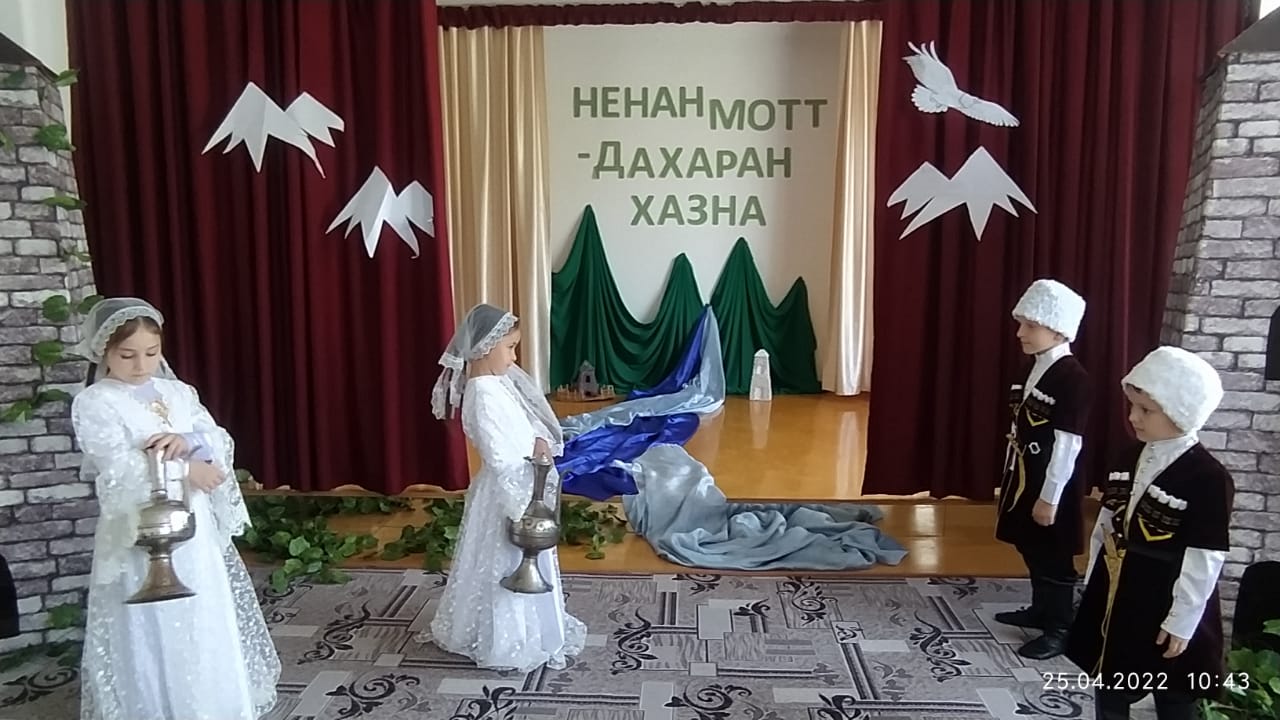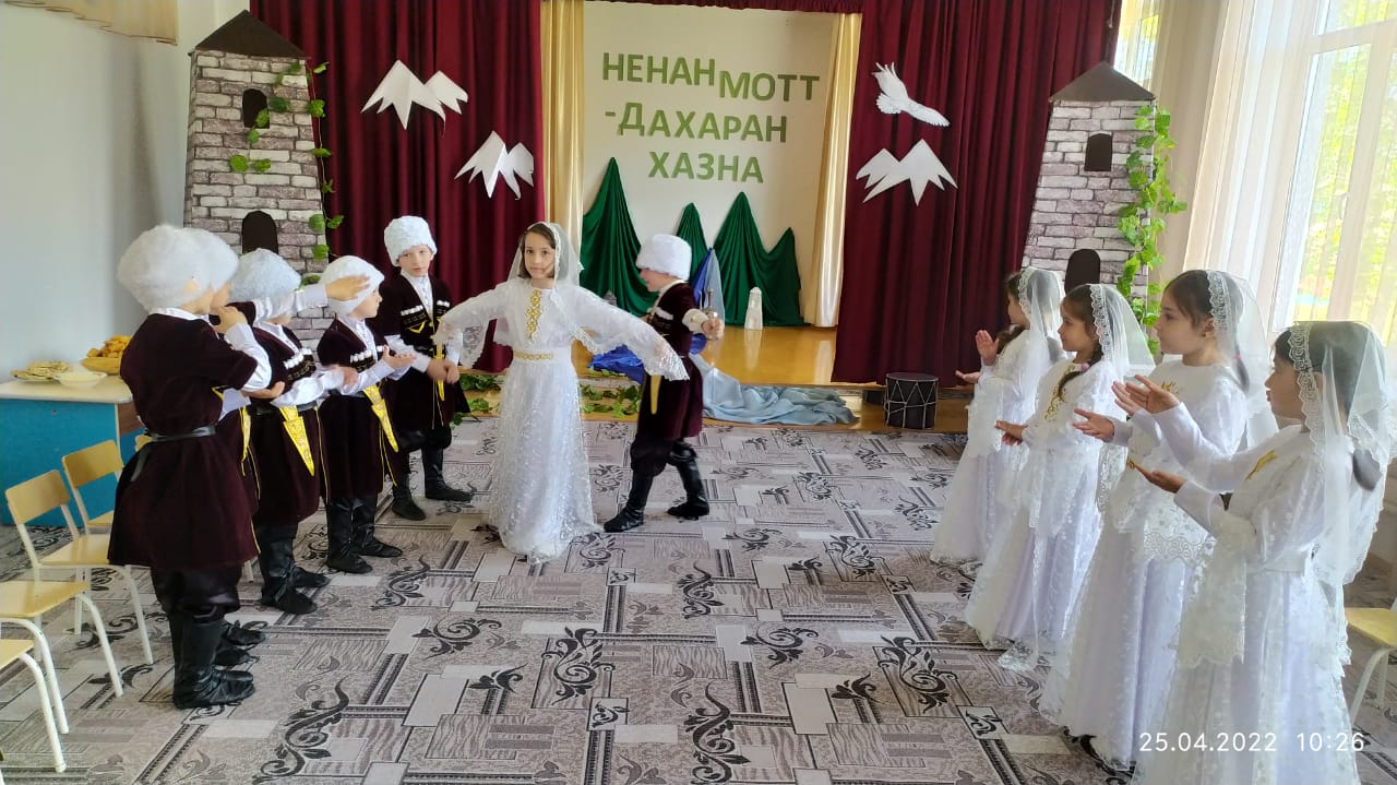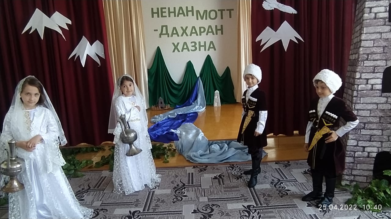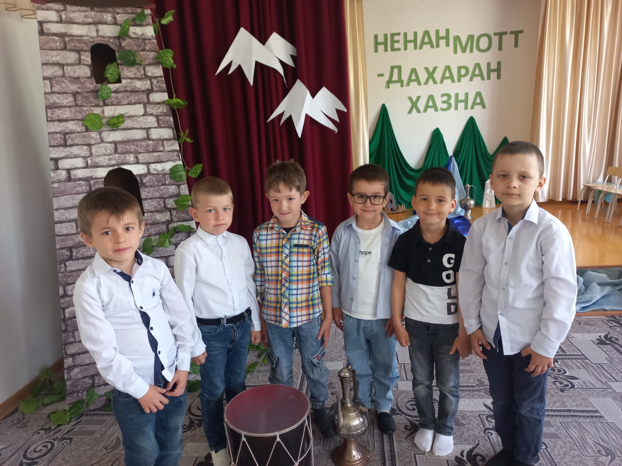 25 апреля с воспитанниками средней группы «Фиалка», воспитатель Абубакарова А.М. провела праздник «Ненан мотт-Дахаран хазна». Целью данного мероприятия стало: вызвать интерес дошкольников к изучению и сохранению родного языка, воспитать уважение к культуре и традициям своего народа, развивать творческие способности.Дети были в национальных костюмах, читали стихи на родном языке, пели национальные песни и танцевали. Дошкольникам рассказали о красоте чеченского языка, о писателях родного края, о культуре и традициях. Воспитанники средних групп показали зрителям сценку о национальных традициях. Все получили положительные эмоции.С детьми нашей группы, воспитатели: Домбаева Р.Х., Хазуева З.У., проведен утренник по сценарию «Ненан-мотт». Мероприятия удалось на славу! Дети с удовольствием читали стихи, отгадывали загадки, исполнили песню «Даймохк», «Сан Даймохк».Слушали пословицы и поговорки и конечно исполнили танец «У родника». После проведения мероприятия пришли к выводу, что родной язык играет важную роль в воспитании детей, и повышает интерес детей культуре своего народа, а также формирует знания о родном языке, о своей родине. Этим мы повышаем свой творческий потенциал, развиваем творческие способности детей, повышаем познавательный интерес к родному языку. Уважение культуре и традиция своего народа.