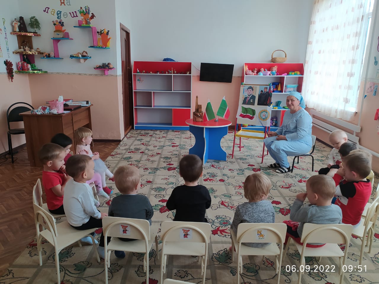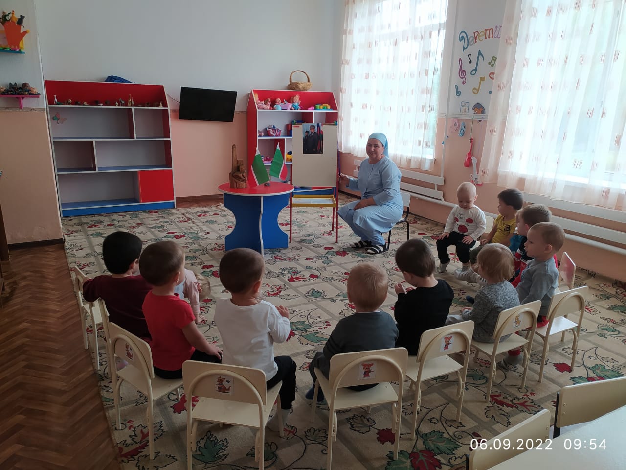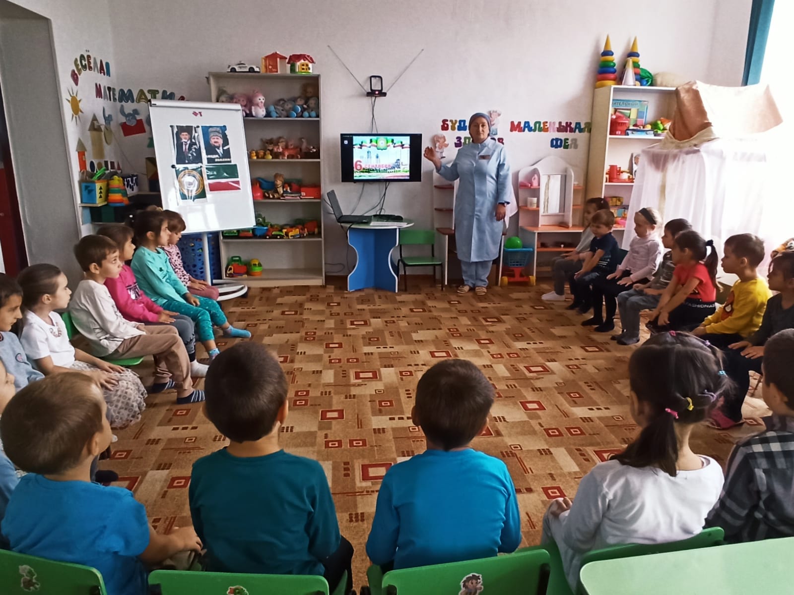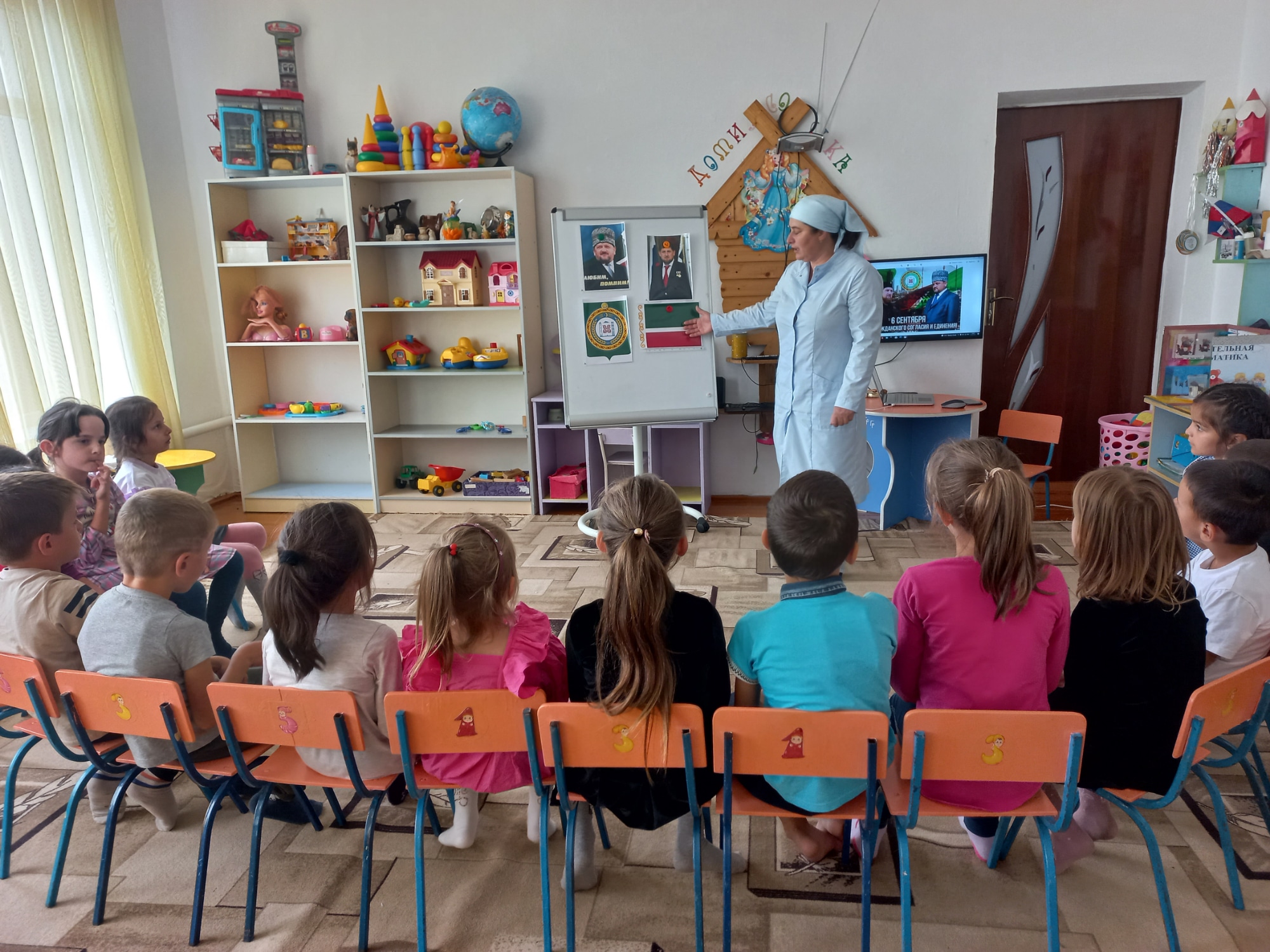 06.09.20226 сентября согласно плану, были проведены мероприятия с воспитанниками ДОУ. Цель: создать атмосферу праздника, воспитывать любовь к родному краю, познакомить с историей создания Республики.