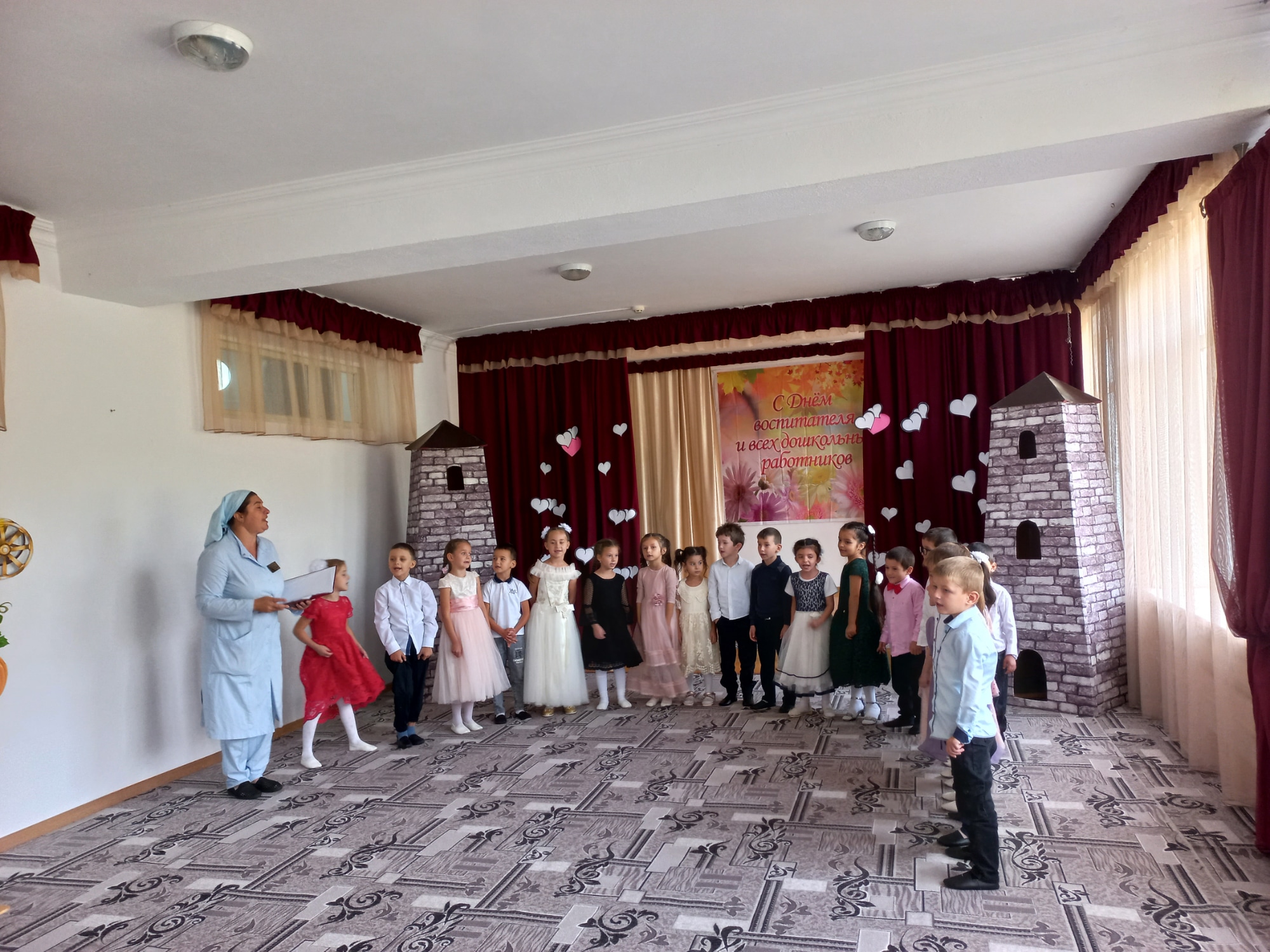 Благодаря этой дате, появилась возможность поблагодарить тех, без кого жизнь детей в дошкольном учреждении не была бы такой увлекательной, безопасной и даже вкусной. В отличие от праздников, во время которых в центре внимания бывают дети, в этот день поздравления принимали сотрудники ДОУ. В нашем детском саду прошёл праздничный концерт для всех сотрудников детского сада, на котором, выступали дети старшей группы совместно с воспитателем Джанаевой Л.Р. Они пели песни, читали стихи и танцевали, чем очень тронули всех присутствующих. Все номера были яркие, интересные, красивые.