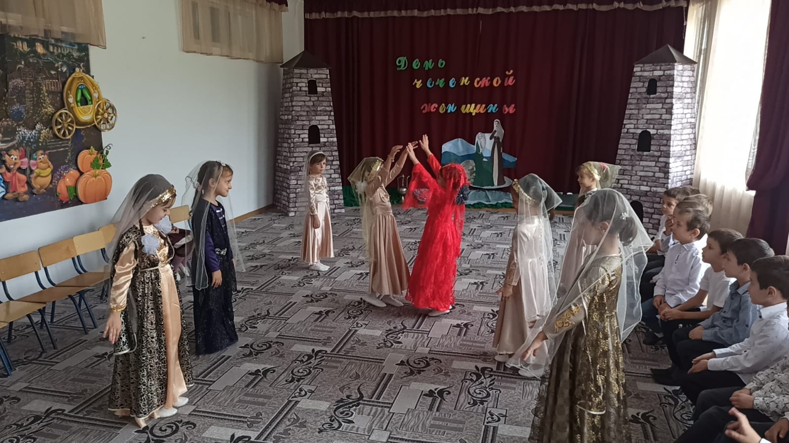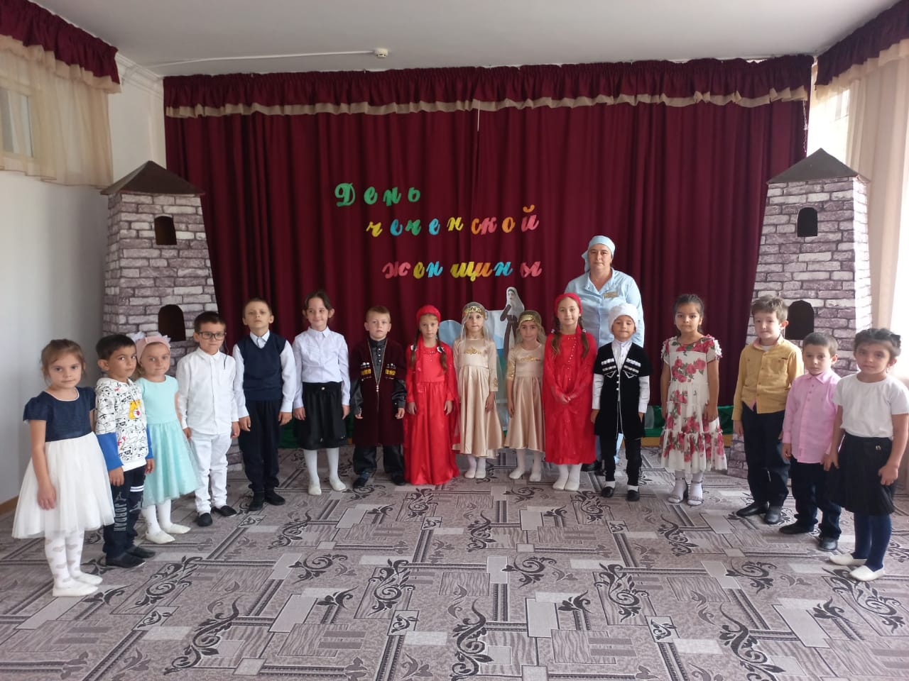 Дети были в национальных костюмах, читали стихи на родном языке, пели национальные песни и танцевали. Дошкольникам рассказали о происхождении этого праздника, что праздник основан в память о 46-ти чеченских девушках, погибших во время Кавказской войны, о культуре и традициях чеченского народа.