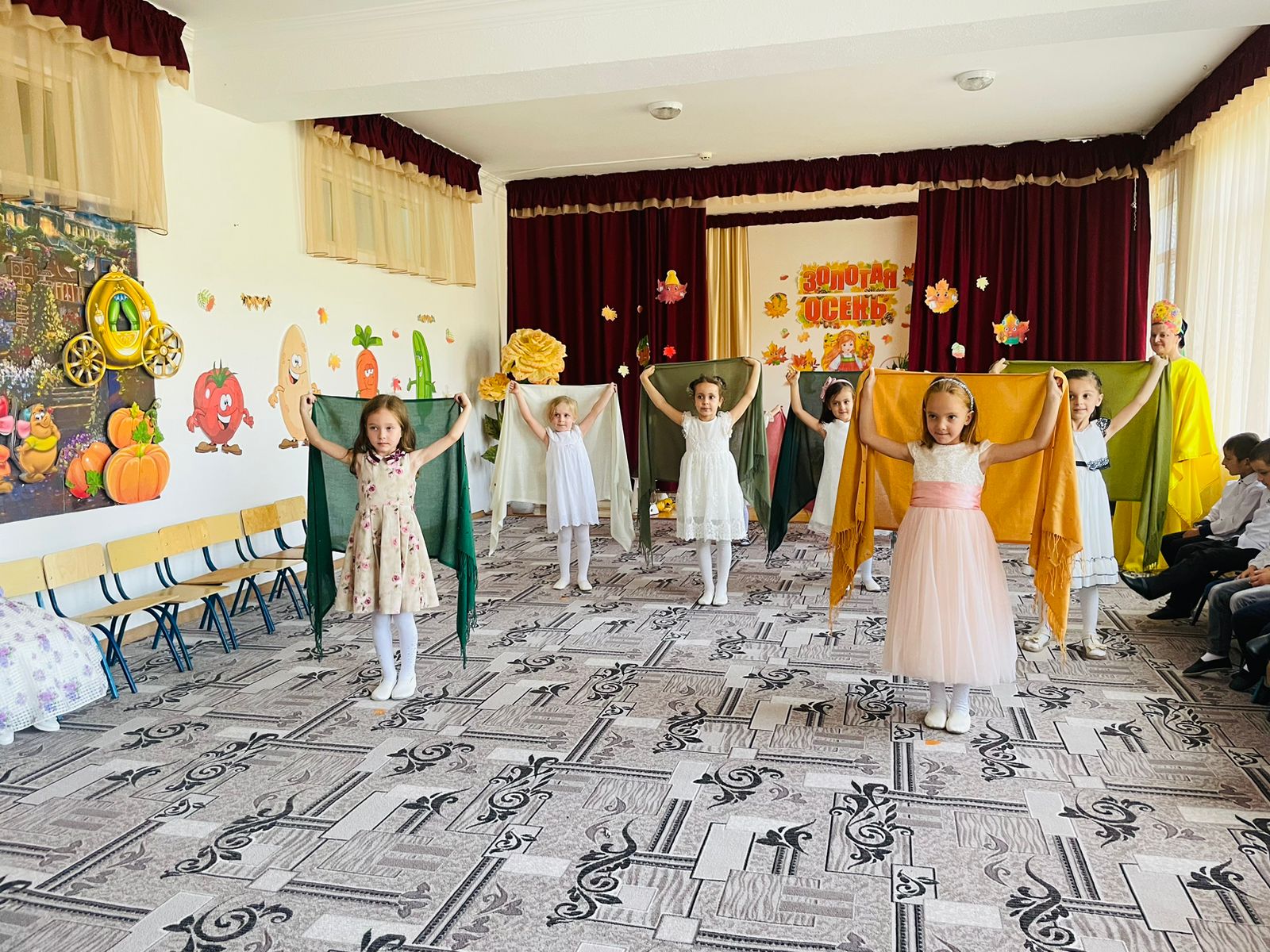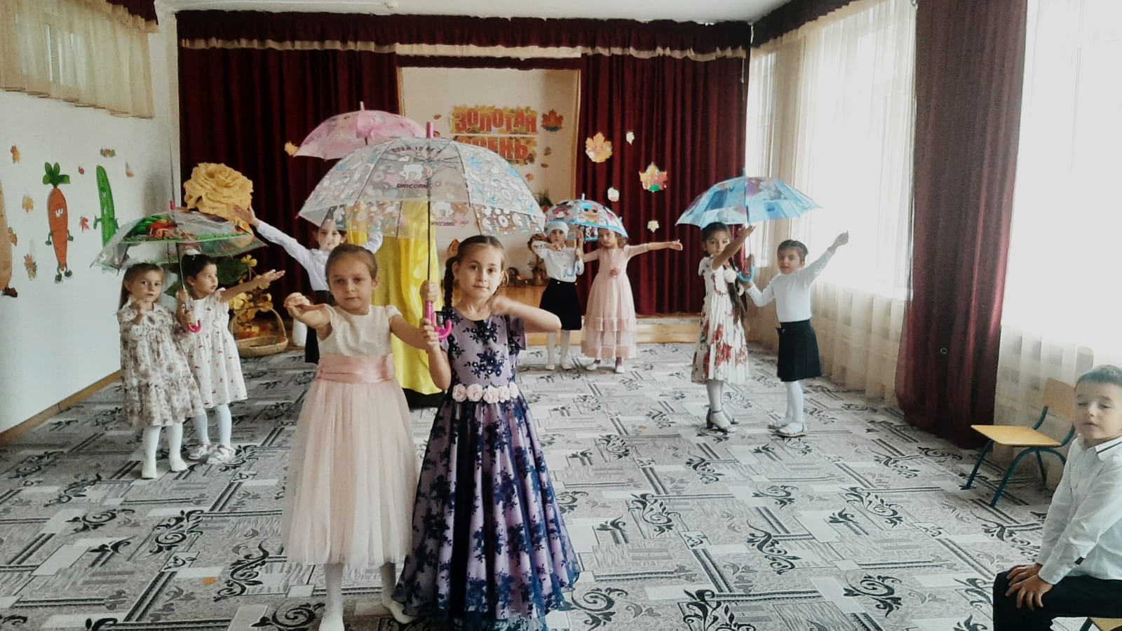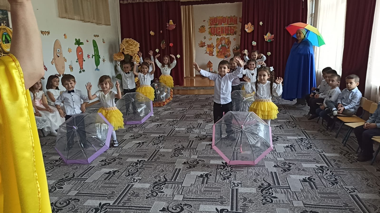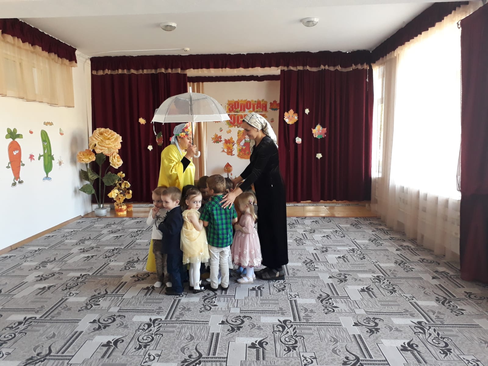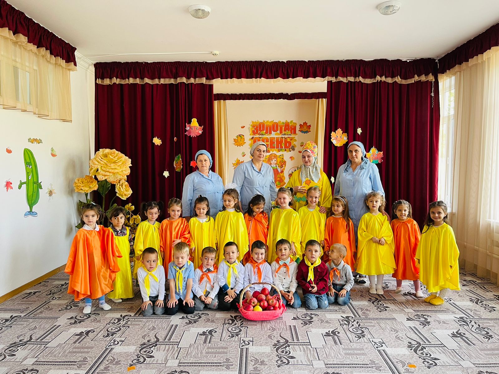 Это особое событие, ведь именно к этому празднику родители и дети готовят красочные, яркие костюмы, которые символизируют дары щедрой осени. Во время праздника ребятишки веселились, любовались костюмами. Они пели песни, танцевали, водили хороводы с Осенью, участвовали в сценках, играли в веселые игры, читали стихи про осень, встречали сказочных героев: саму виновницу торжества – Осень, Тучку и др. Все воспитанники получили массу положительных эмоций и угощения от Осени. В связи с ограничительными мерами по коронавирусной инфекции (Covid 19) родители не присутствовали на празднике, но им предоставили видеозарисовки, которые разместили на страничках социальных групп родителей.