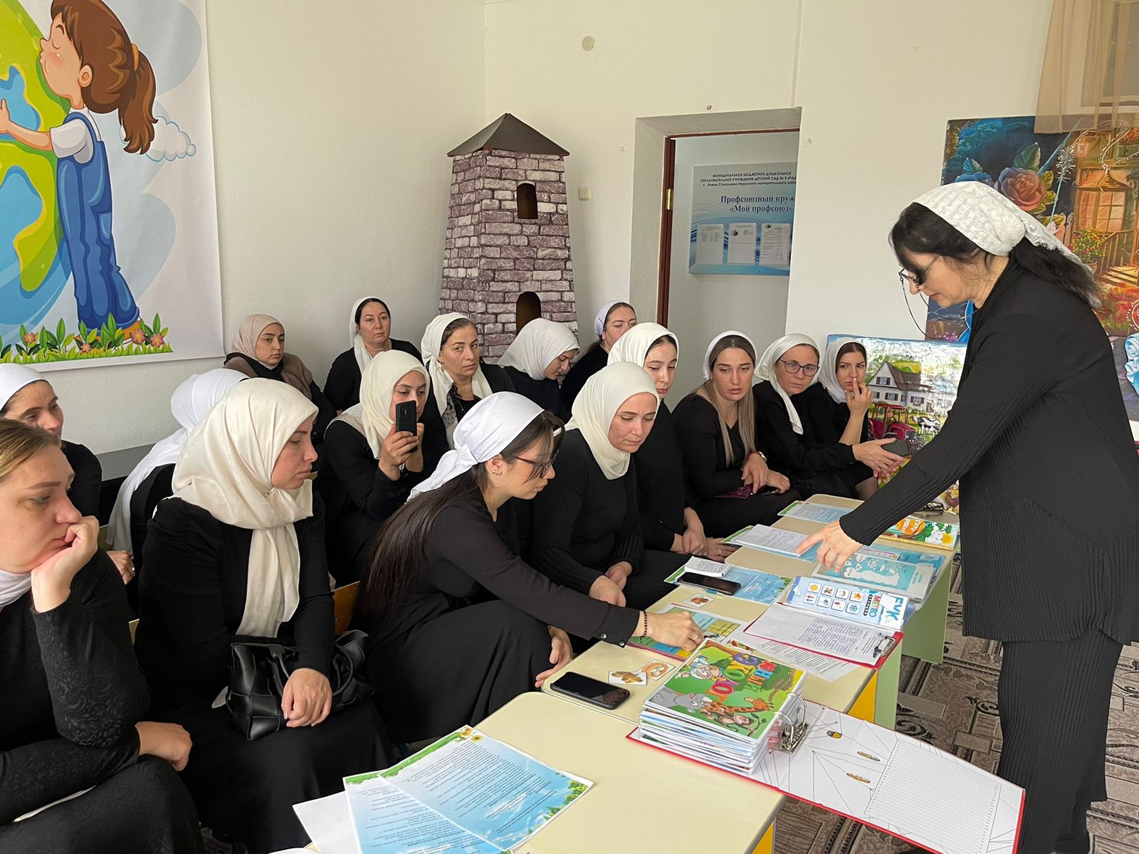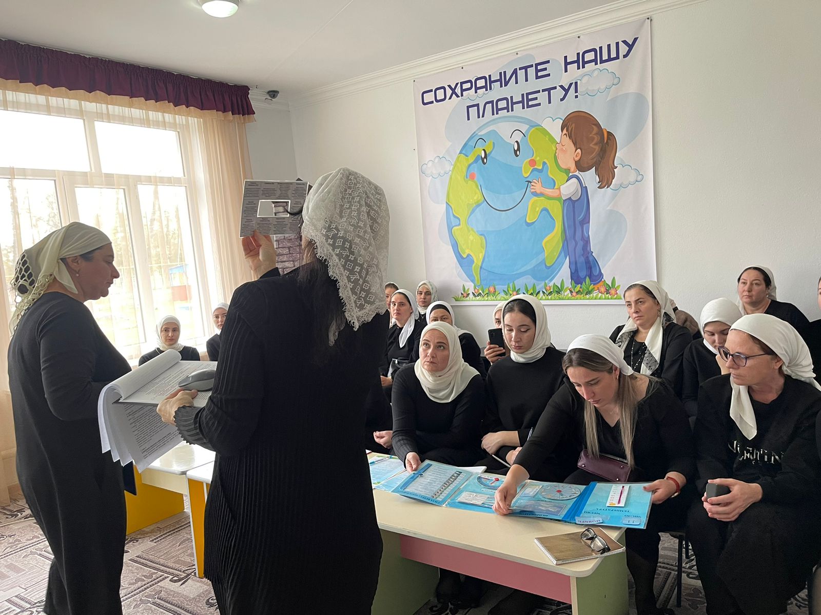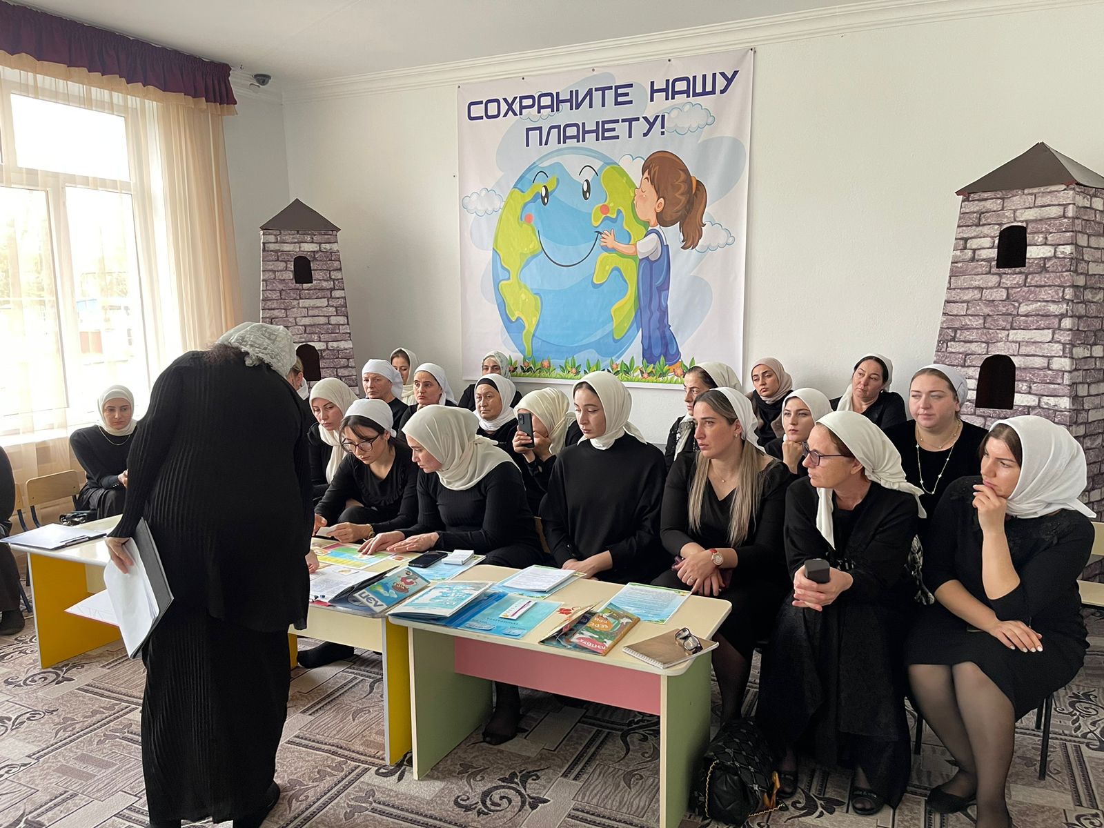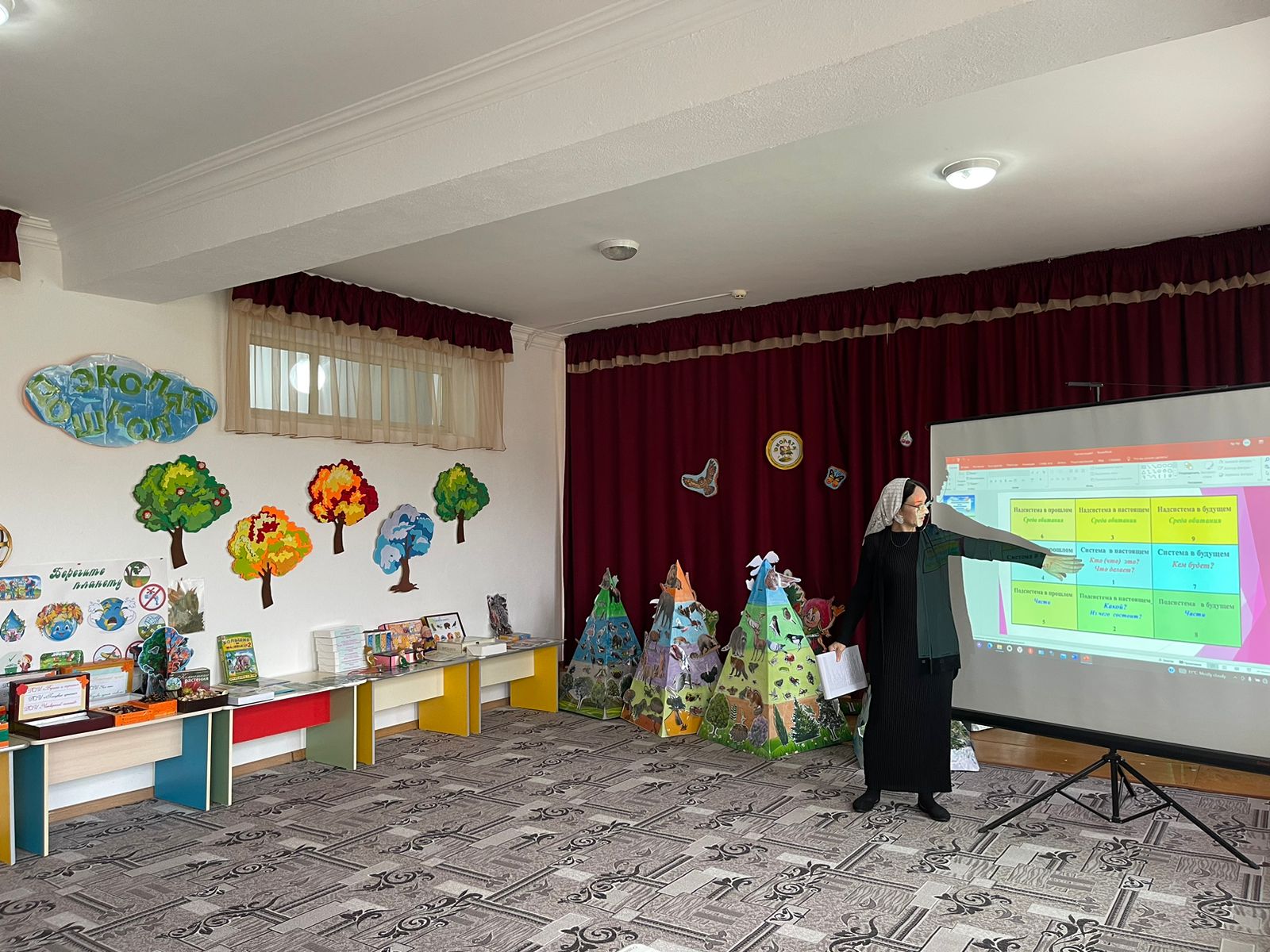 Подготовила и провела семинар старший воспитатель высшей квалификационной категории Магомадова М.П. На семинаре присутствовали педагоги в количестве 27 человек. Целью семинара было способствование развитию экологической культуры педагога, как основы экологического образования дошкольников. В ходе семинара присутствующие заслушали доклад заведующего Докаловой Р.Х. об актуальности экологического воспитания дошкольников, далее Магомадова М.П. представила презентацию «Новые подходы по организации экологического образования детей в ДОУ» об опыте работы и инновационных технологиях, применяемых в нашем МБДОУ по воспитанию и обучению дошкольников в рамках экологического образования. Также с презентацией «Экологическое воспитание детей старшей группы» из опыта работы выступила Джанаева Л.Р., воспитатель высшей квалификационной категории.