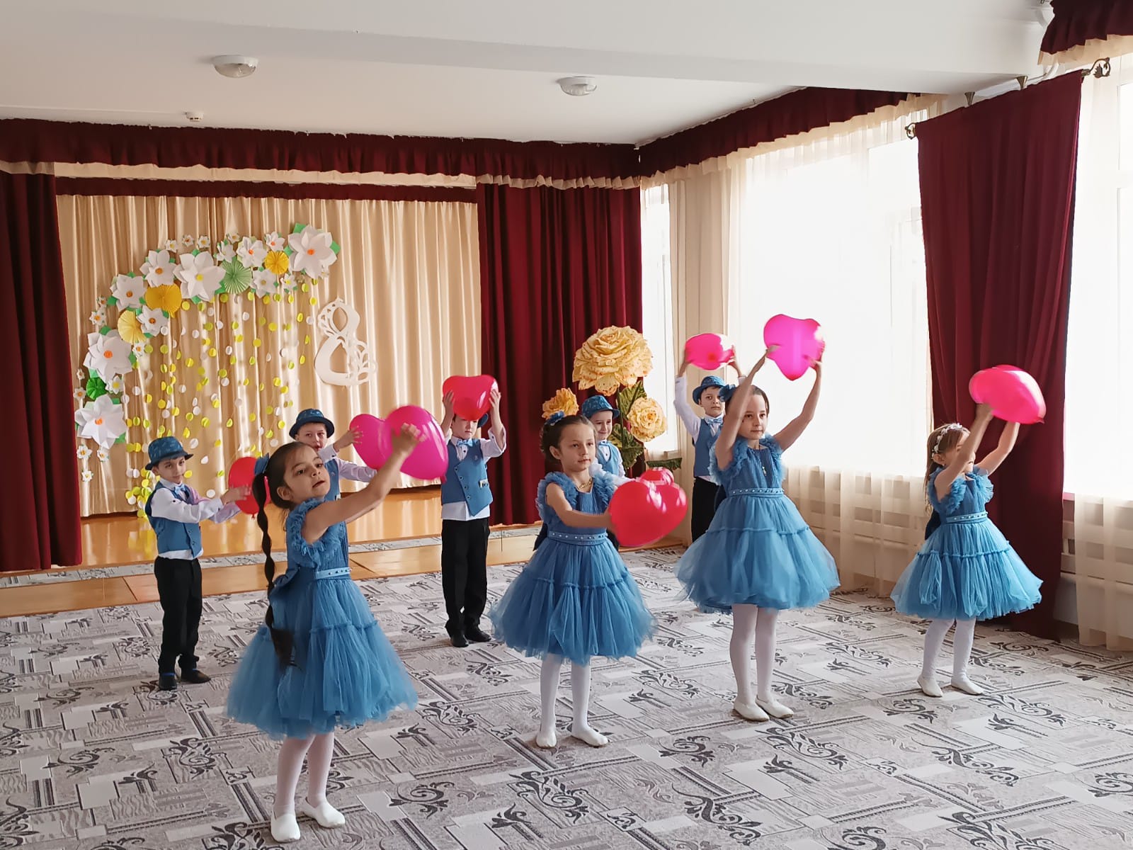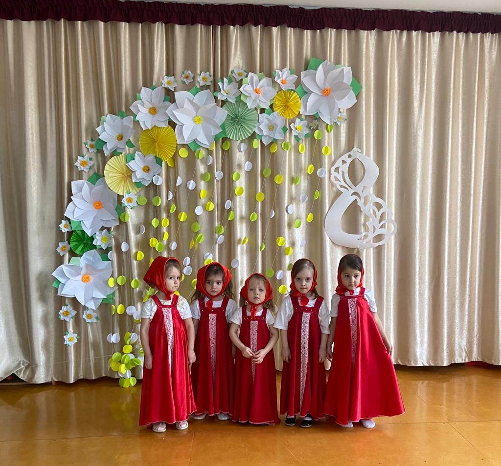 Изготовили поздравительные открытки во всех группах. Для родителей были оформлены папки-передвижки с поздравлениями для женщин. В эти дни ребята поздравляли своих самых близких и дорогих людей.6 и 7 марта в нашем МБДОУ проходили утренники во всех возрастных группах, посвящённые празднованию Международного женского дня!В празднично украшенном зале дети поздравляли виновников торжества: пели добрые и ласковые песни, читали трепетные стихи, исполняли шуточные сценки, танцевали.Праздничное весеннее настроение, весёлые детские улыбки зарядили энергией всех участников!
