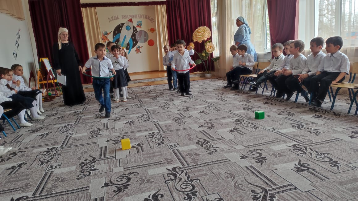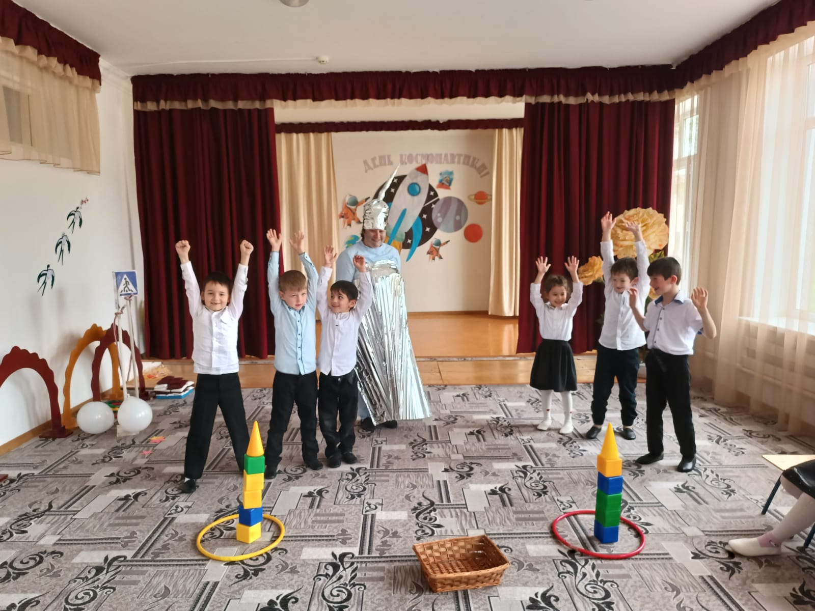 В нашем саду в этот день проводились развлечения «День космонавтики» в старшей группе «Ромашка», «Школа Юных космонавтов» в средней группе «Фиалка». Ребята побывали в космосе, посмотрев презентацию о космических полетах и космических кораблях, поговорили о первом космонавте Ю. Гагарине, ловко отгадали космические загадки, поиграли в веселые подвижные игры, показали свою ловкость и смелость в веселых эстафетах. Добавили веселого задора конкурсы, эстафеты и др. Также была организована выставка детских работ на тему «космос».