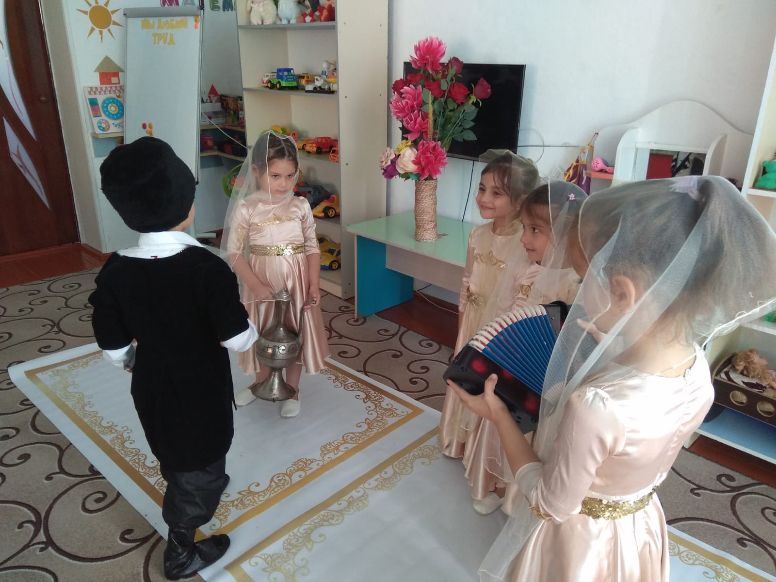 15 сентября 2023г. с воспитанниками средней группы «Фиалка» воспитатель Минциева З.Х. и старшей группы «Ромашка» воспитатель Алиева М.У. провели праздник, посвященный «Дню чеченской женщины». Дети были в национальных костюмах, читали стихи на родном языке, пели национальные песни и танцевали. Дошкольникам рассказали о происхождении этого праздника, что праздник основан в память о 46-ти чеченских девушках, погибших во время Кавказской войны, о культуре и традициях чеченского народа.