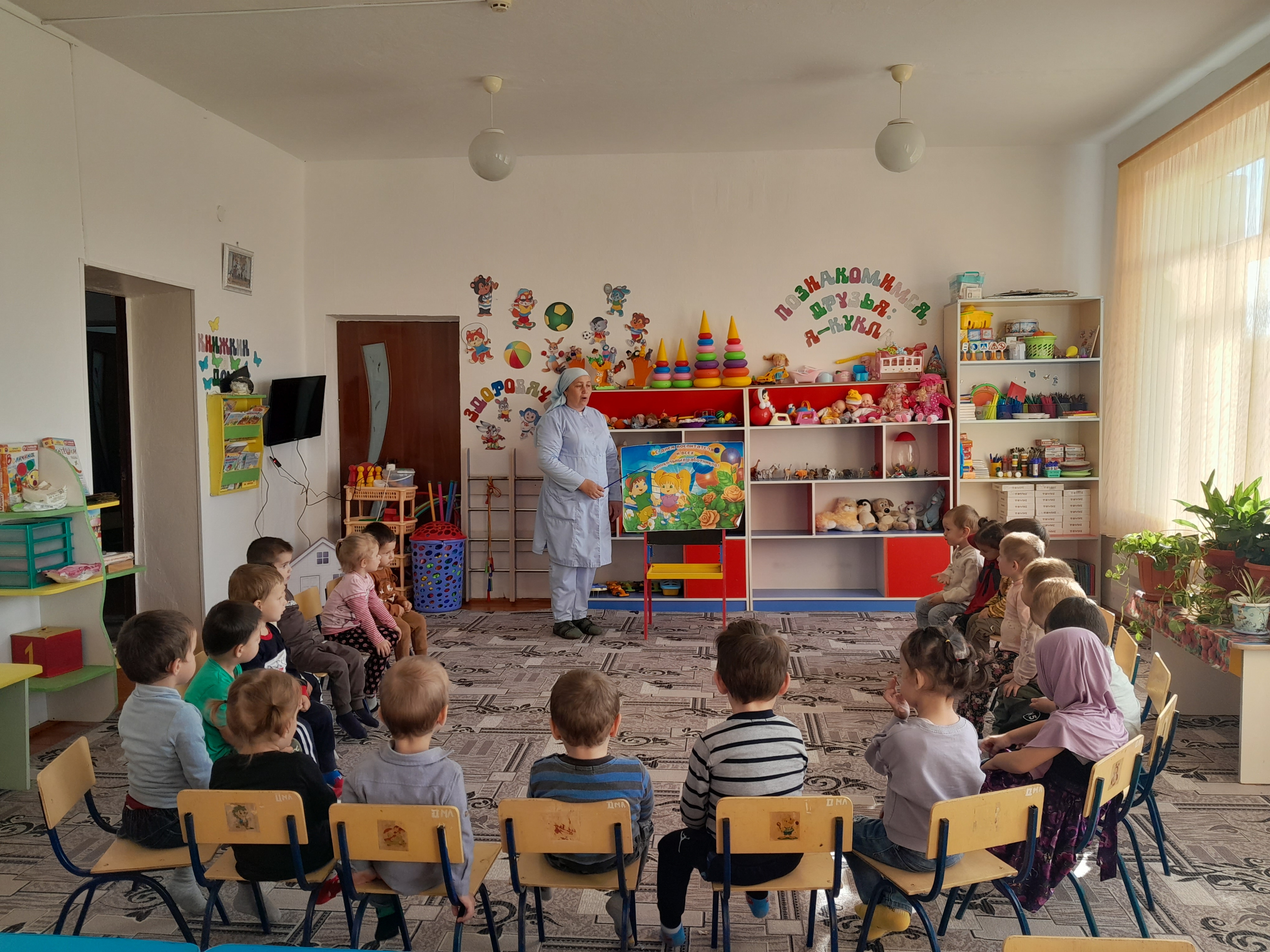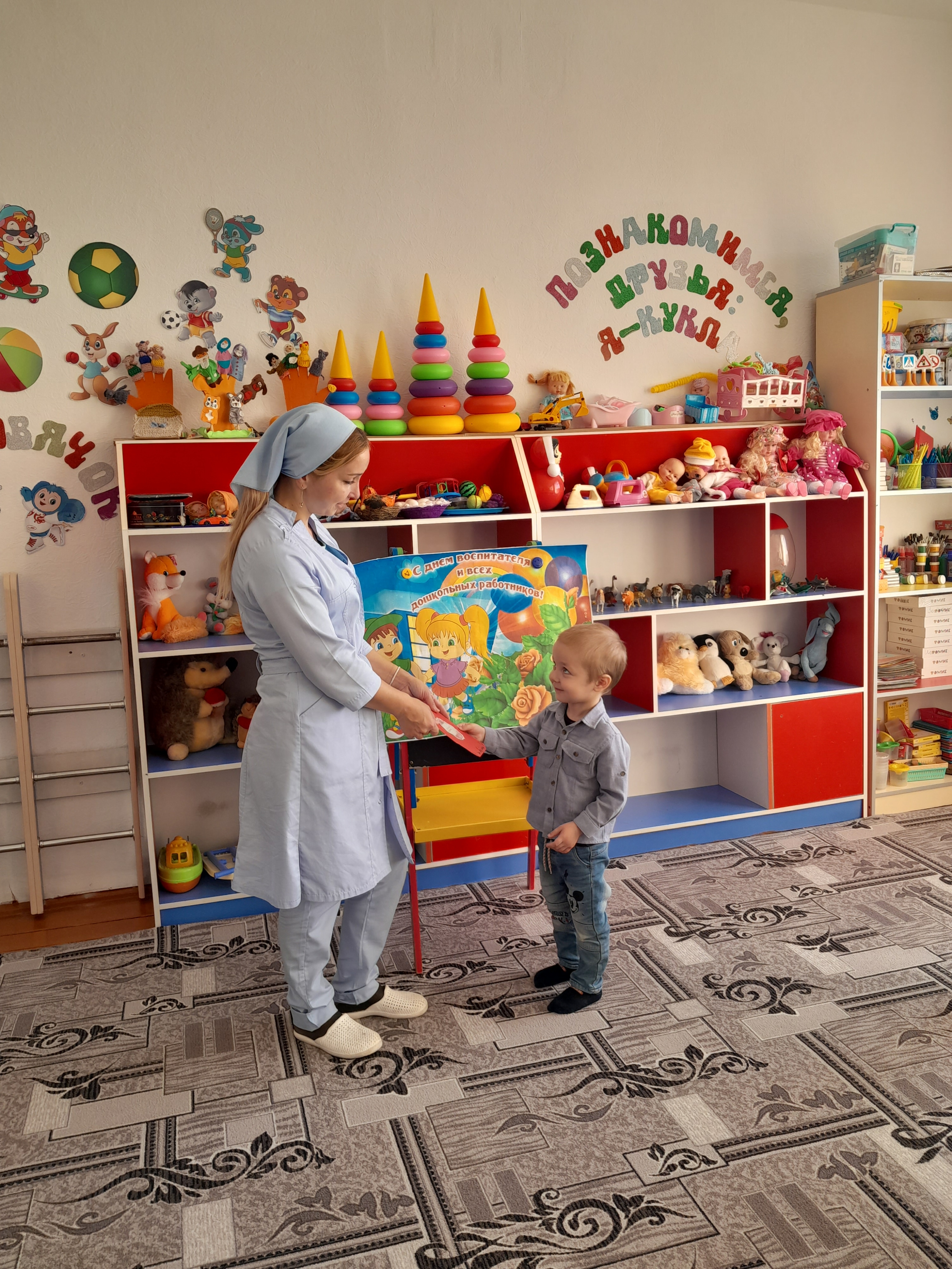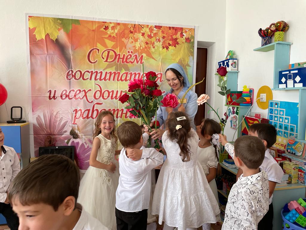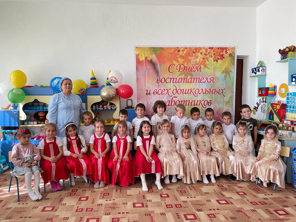 27.09.202327 сентября отмечается профессиональный праздник всех работников дошкольного образования – День воспитателя и всех работников дошкольного образования. В рамках реализации календарного плана воспитательной работы были проведены запланированные мероприятия с детьми всех возрастных групп. Благодаря этой дате, появилась возможность поблагодарить тех, без кого жизнь детей в дошкольном учреждении не была бы такой увлекательной, безопасной и даже вкусной. В отличие от праздников, во время которых в центре внимания бывают дети, в этот день поздравления принимали сотрудники ДОУ. В нашем детском саду прошёл праздник для всех сотрудников детского сада, на котором, выступали дети старшей группы совместно с воспитателем Хусейновой М.А. Они пели песни, читали стихи и танцевали, чем очень тронули всех присутствующих. Все номера были яркие, интересные, красивые. В группах прошло развлечение с детьми на тему: «День дошкольного работника». В этот знаменательный день дети нашей группы поздравляли воспитателей с их профессиональным праздником! Дарили цветы, открытки, пели, играли водили хоровод. Также с деть ми была проведена предварительная работа: Беседа о работниках дошкольного учреждения, рассматривание картин, экскурсия по детскому саду. Прослушивание песни о воспитателе. И.т. Знакомили детей с праздником «День дошкольного работника».