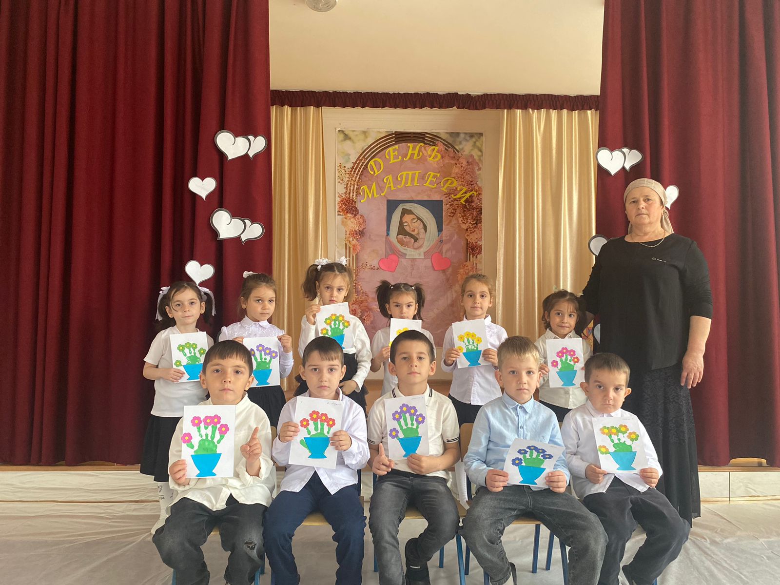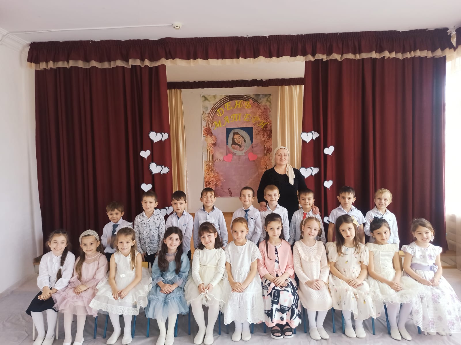 24.11.2023В последнее воскресенье ноября в России отмечается День Матери. В преддверии этого праздника во всех возрастных группа ДОУ были проведены разнообразные мероприятия. Вместе с детьми воспитатели читали книги по данной теме, рассматривали иллюстрации о семье, о профессиях, разгадывали загадки, учили стихи о маме. Рисовали портреты мам. Оформлены папки – передвижки об истории возникновении этого праздника. Все изготовили поздравительные открытки. 24 ноября 2023г. на заключительном этапе в средней и старшей группе прошли музыкальные праздники. В празднично украшенном зале наши воспитанники читали стихи с поздравлениями, пели и танцевали.