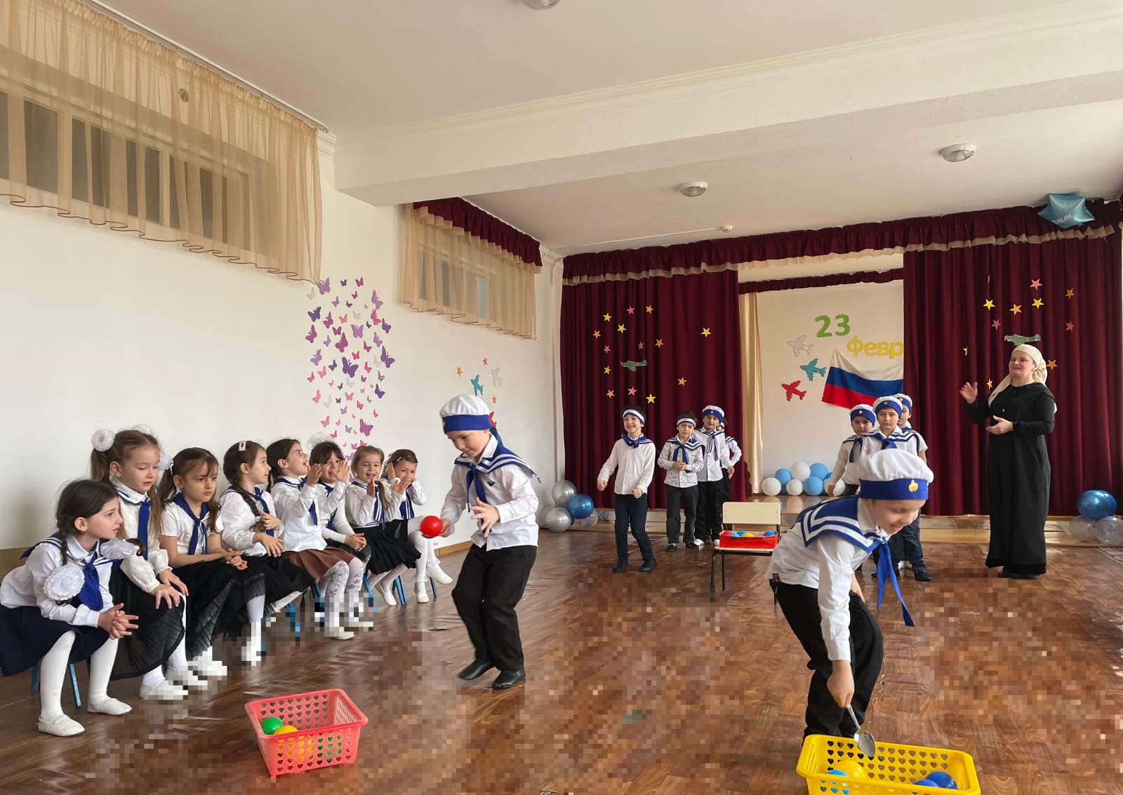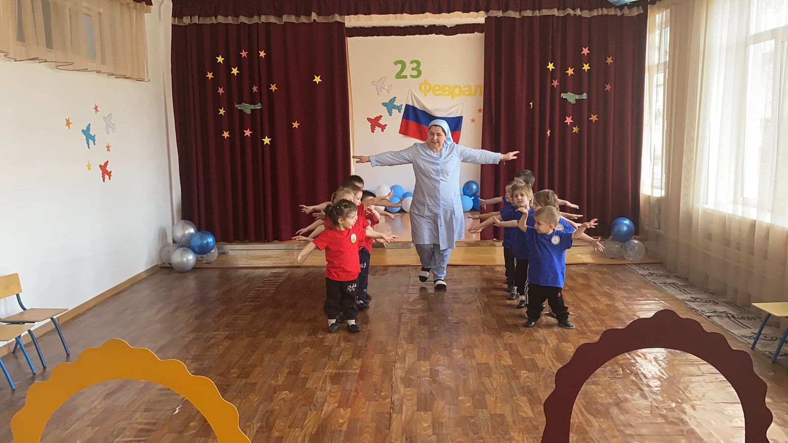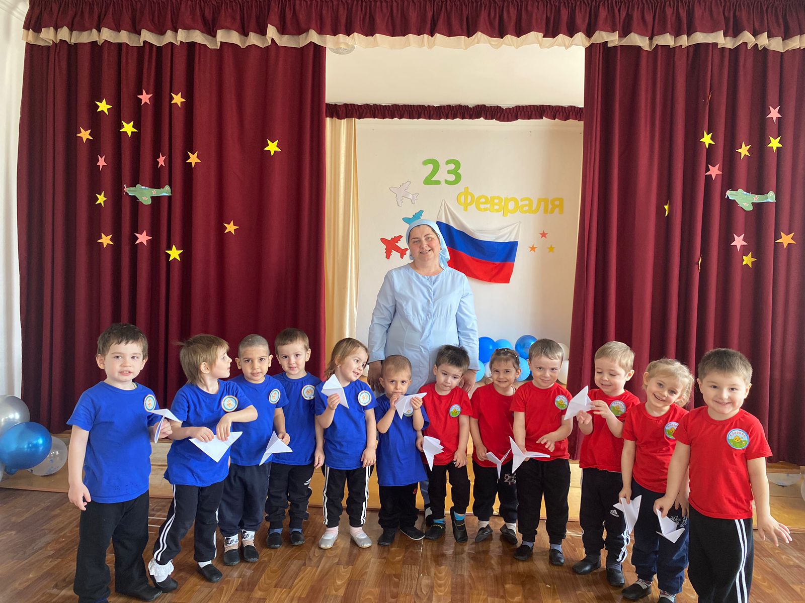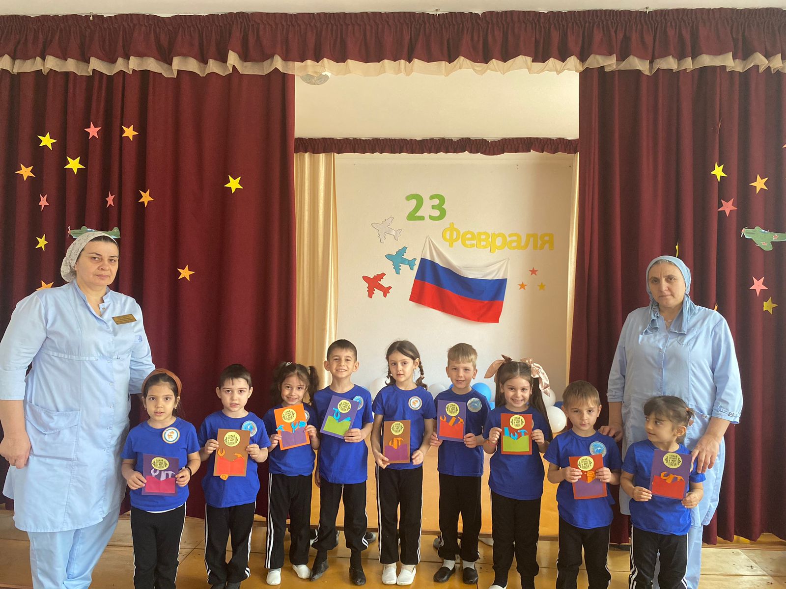 22 февраля прошли праздники для воспитанников средней и старшей группы, посвященные празднованию Дня защитника Отечества. Целью мероприятий было воспитание патриотических чувств воспитанников, любви к Родине, развитие артистичности и создание праздничной атмосферы. Дошкольники читали стихи о Родине, пели песни, танцевали. Участвовали в спортивных эстафетах и конкурсах. Воспитатели подготовили ряд конкурсов и эстафет для мальчиков – будущих защитников Родины. Все дети были нарядно одеты в символические костюмы, а в конце мероприятия воспитанники сфотографировались с поздравительными открытками, изготовленными своими руками, которые вручили дома своим папам и дедушкам.