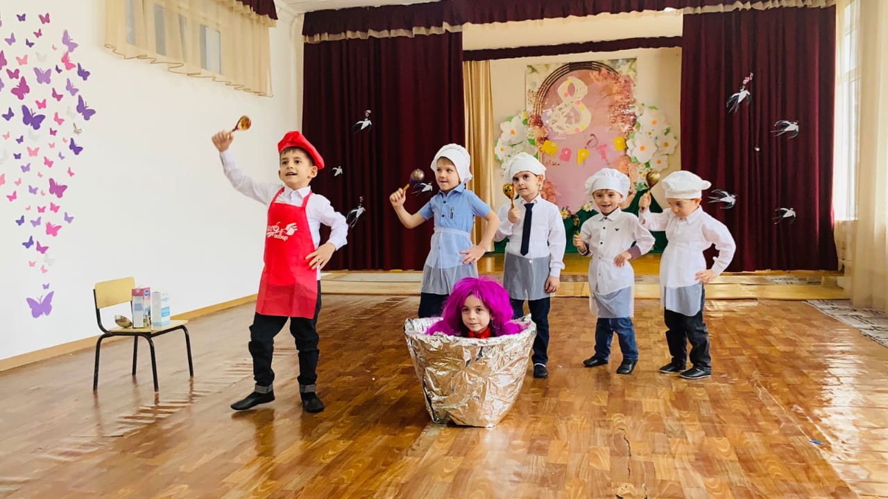 В празднично украшенном зале дети поздравляли виновников торжества: пели добрые и ласковые песни, читали трепетные стихи, исполняли шуточные сценки, танцевали.