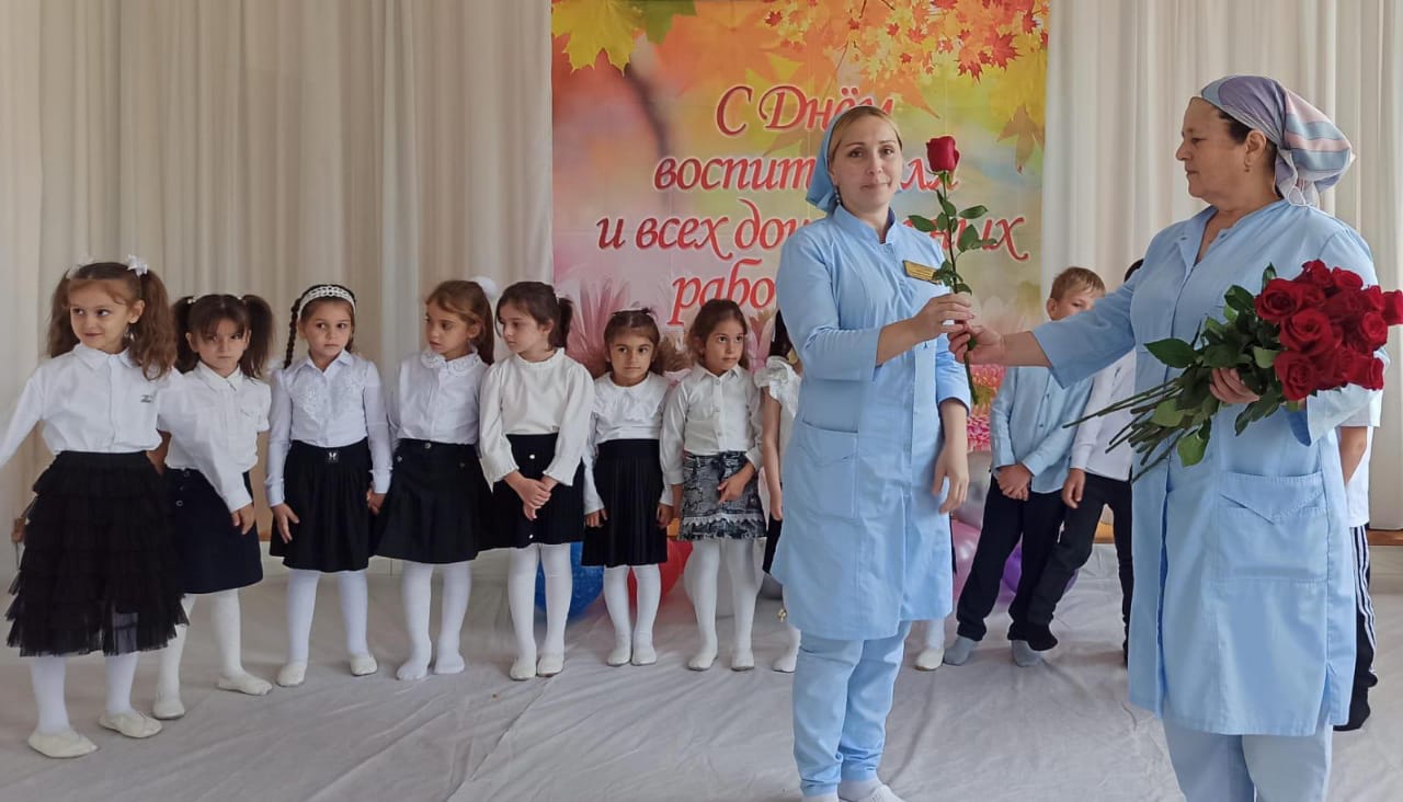 Благодаря этой дате, появилась возможность поблагодарить тех, без кого жизнь детей в дошкольном учреждении не была бы такой увлекательной, безопасной и даже вкусной. В отличие от праздников, во время которых в центре внимания бывают дети, в этот день поздравления принимали сотрудники ДОУ. В нашем детском саду прошёл праздничный концерт для всех сотрудников детского сада, на котором, выступали дети старшей группы совместно с воспитателями Минциевой З.Х. и Чимаева А.А. Они пели песни, читали стихи и танцевали, чем очень тронули всех присутствующих. Все номера были яркие, интересные, красивые.