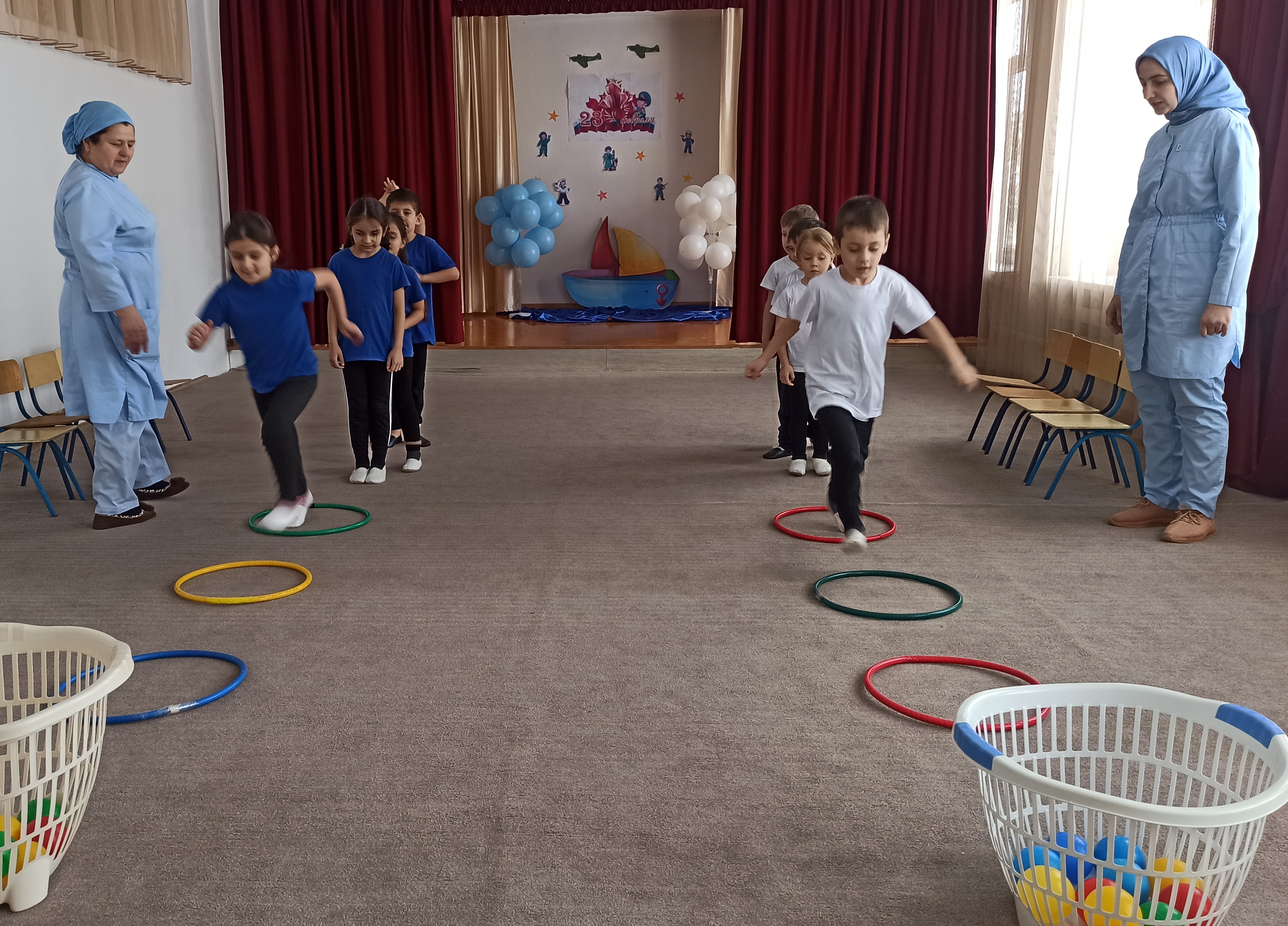 21 февраля прошло спортивное мероприятие "Мы-будущие защитники Родины". Это мероприятие носило соревновательный характер между двумя группами. Средняя группа «Фиалка» и старшая группа «Ромашка». С самого начала воспитанники были настроены на упорную борьбу и показали её в полной мере в ходе прохождения всех этапов. Спортивный задор и желание добиться победы для своей команды захватывали детей настолько, что они не замечали происходящего вокруг. Все старались изо всех сил быть первыми.
