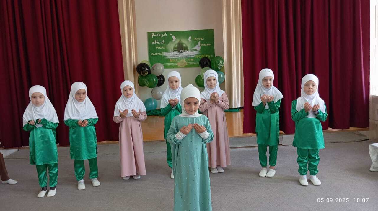 Дети читали стихи и суры "Аль-Фатиха", "Ихляс" и Аттахият, исполняли нашид про Пророка (да благословит его Аллах и приветствует).
